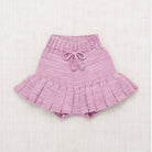 Skating Pond Skirt by Misha & Puff. A hand-knit skirt in Pima cotton, featuring attached bloomers with ribbed cuffs and a ribbed waistband with a popcorn tie drawstring for a secure fit.