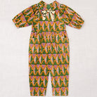 Zora Jumpsuit by Misha & Puff. A jumpsuit in cotton twill, featuring mid-length blouson sleeves, a rounded collar, a gathered waist, loose, tapered legs, a contrast-print bow at the center front, and front patch pockets. Finished with French seams.