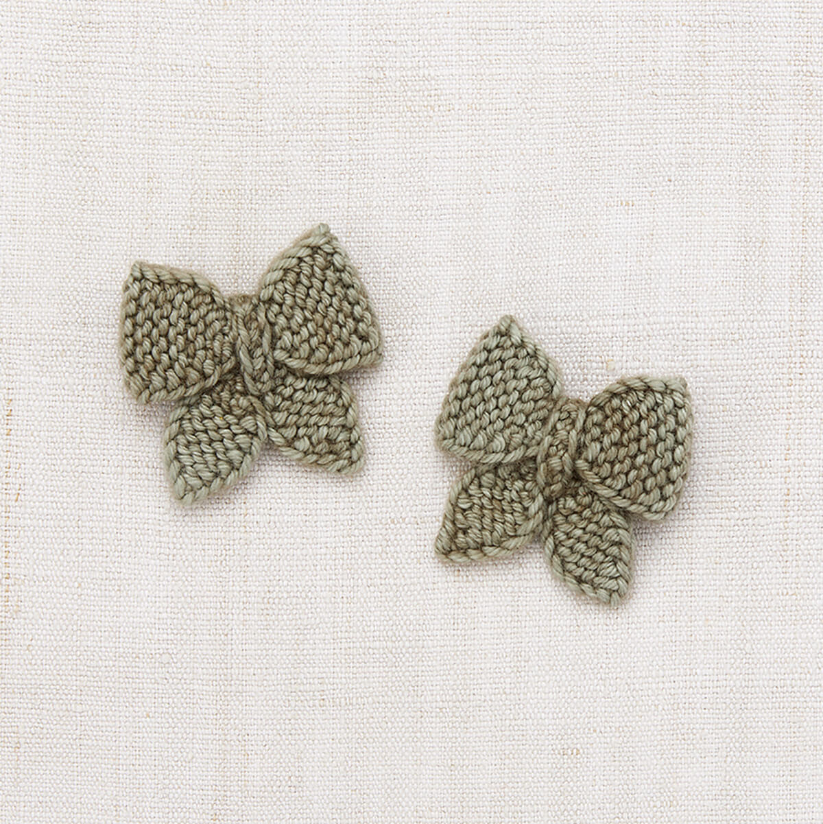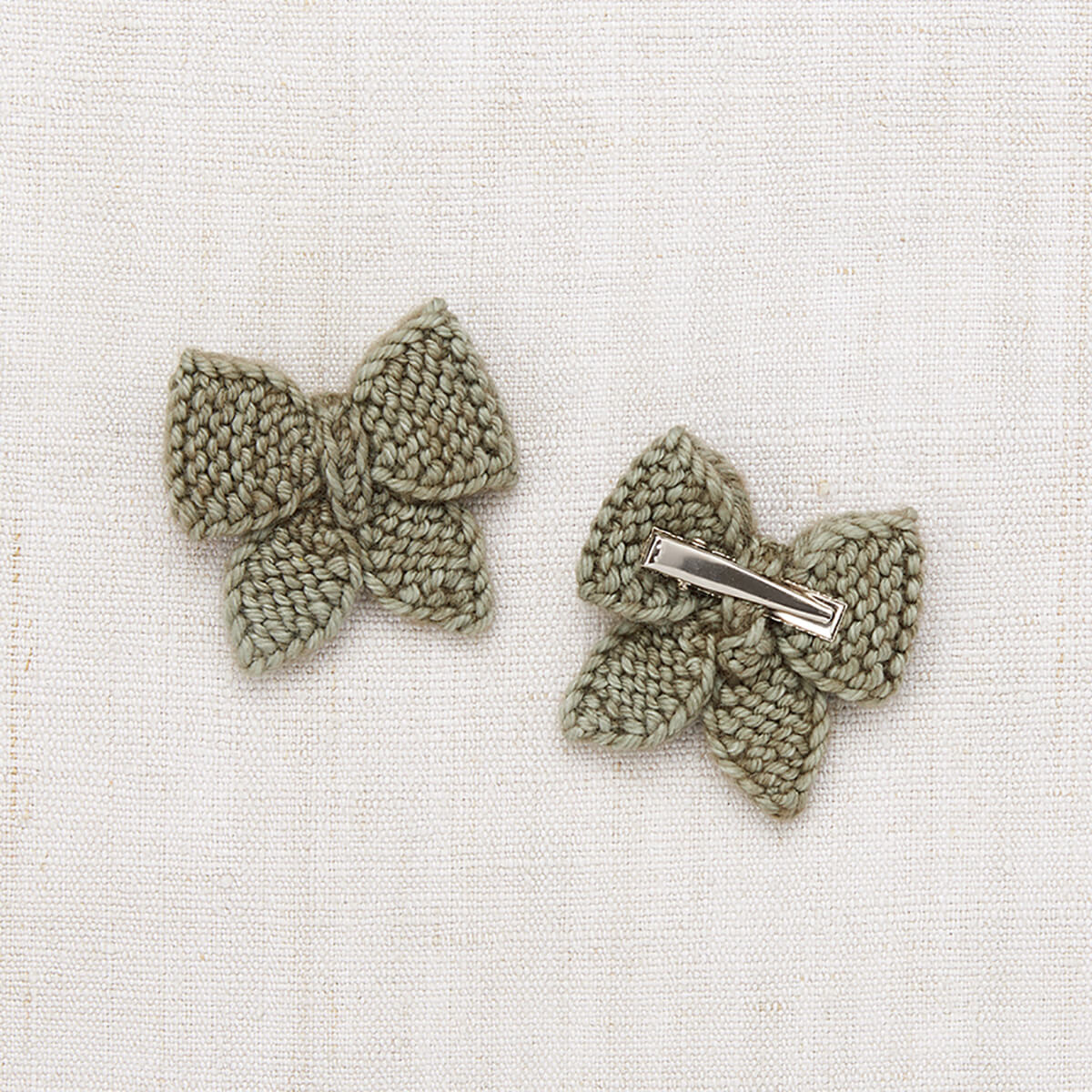 Baby Puff Bow Set by Misha & Puff. A classic hand-knit bow set on alligator clips in Merino Wool. The Baby Puff Bow Set is the smallest hair accessory, made for matching your favorite knitwear, adding a pop of colour, or gifting to a friend.
