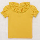 Balloon Sleeve Paloma Tee by Misha & Puff. A classic slim-fit puff-sleeve tee in soft Pima cotton, with a gathered ruffle neck and covered elastic ruffle cuff with a contrast merrowed edge, and snap closure at the back neck.