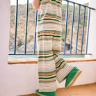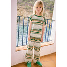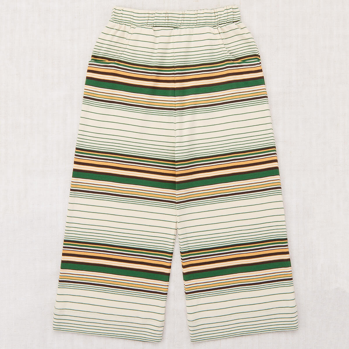 Beach Pant by Misha & Puff. Wide-leg pull-on pants in organic Pima cotton, with an elastic waistband and round curve pockets. Each colour of the stripes featured in this style are dyed separately and then knit together, creating colours that last longer.