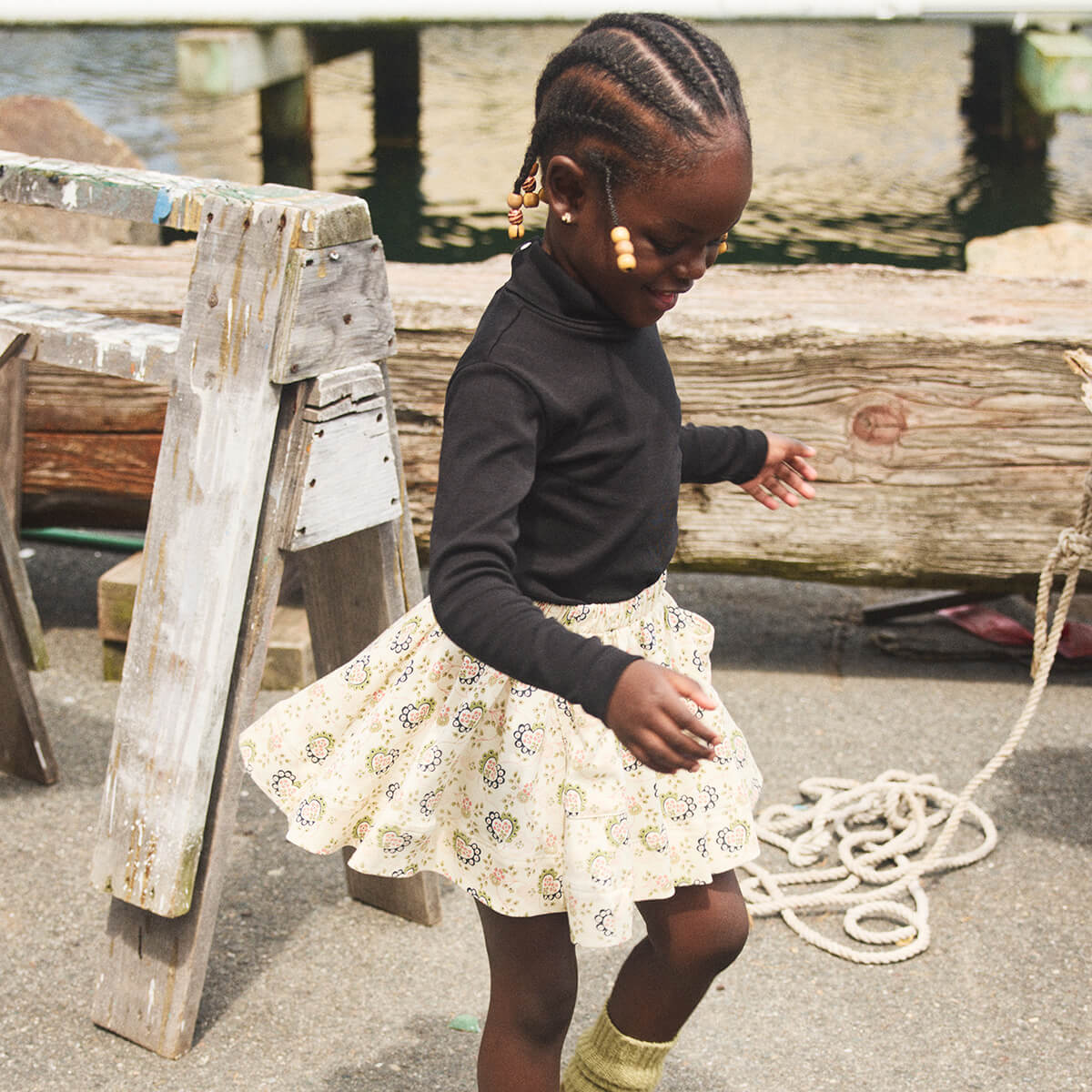 Circle Skirt by Misha & Puff. A twirly pull-on skirt in Pima cotton, featuring a gathered elastic waistband, front pockets that give extra style and functionality.