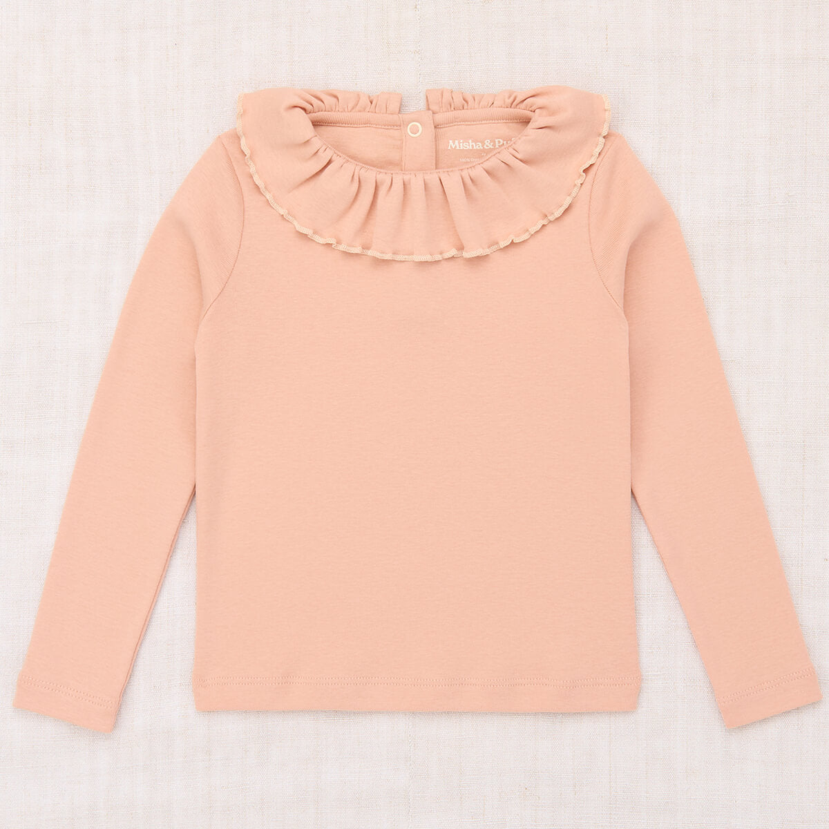 Paloma Top by Misha & Puff. Luxuriously soft Pima cotton top with a gathered neck ruffle. Easy to dress up or for everyday play.