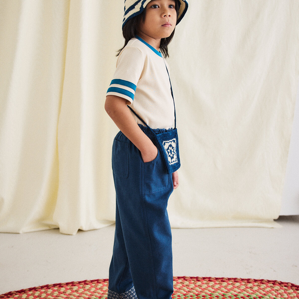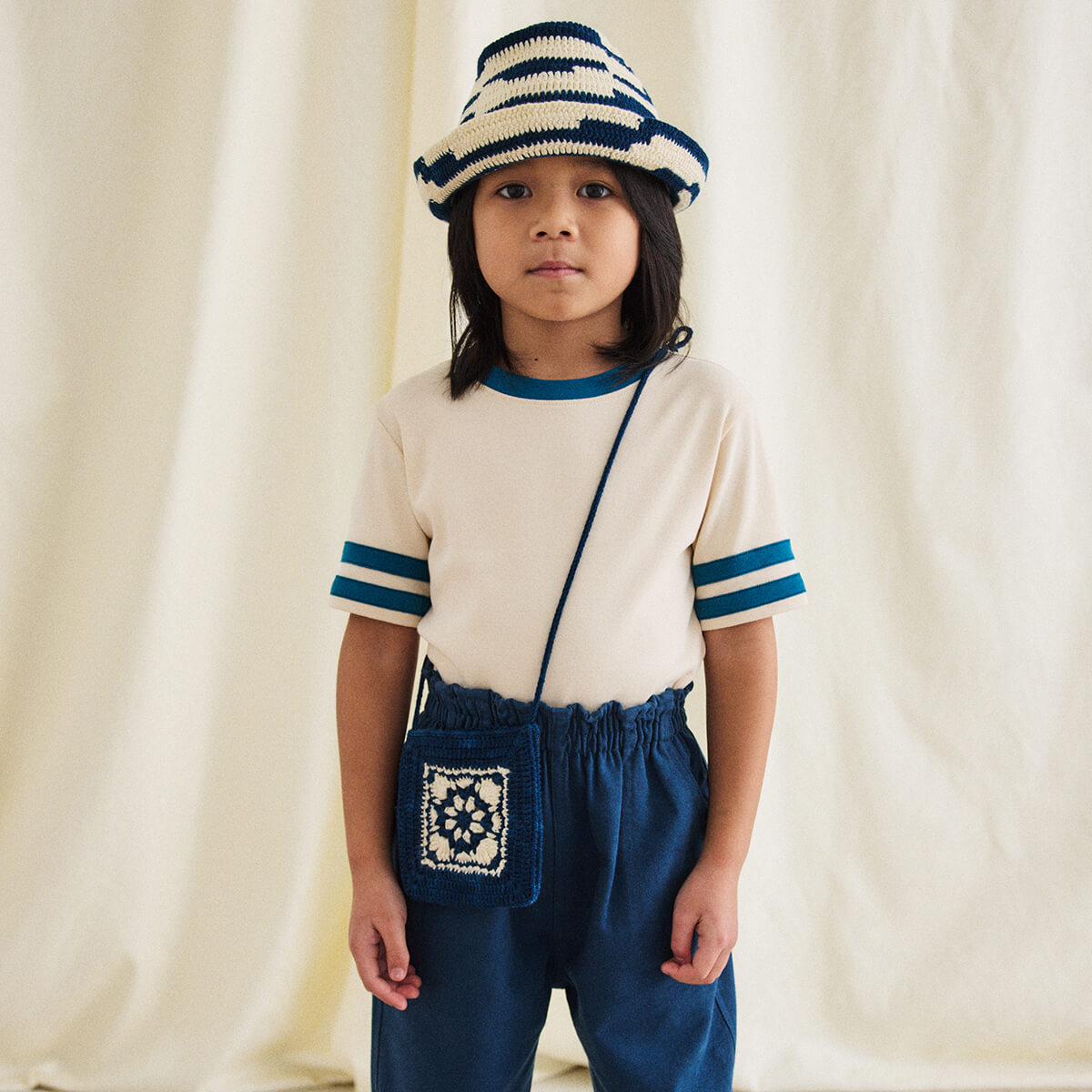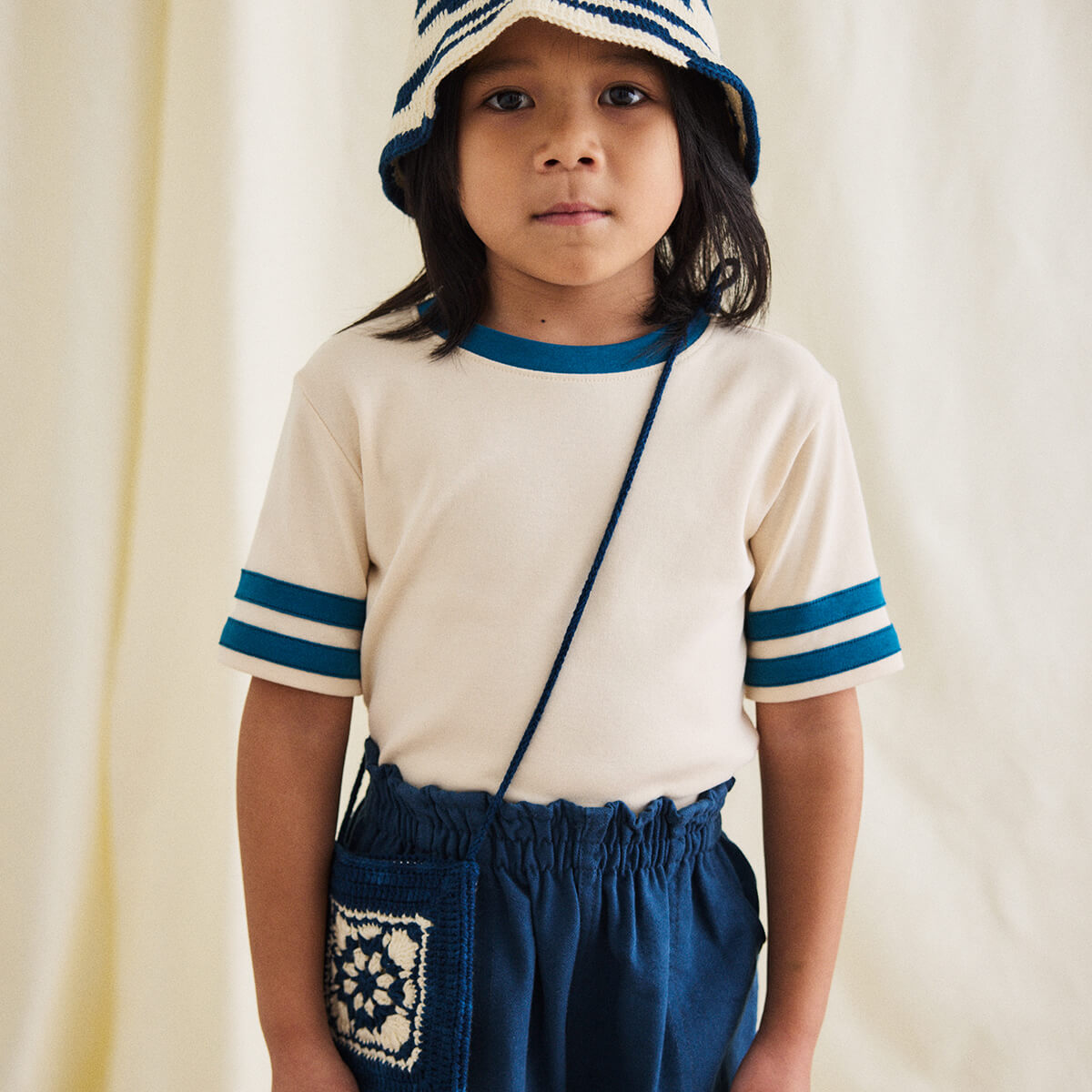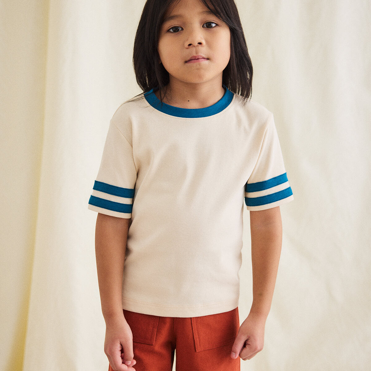 Rec Tee by Misha & Puff. A classic slim-fit ringer tee in soft Pima cotton, with contrast appliqué striped sleeves and a contrast neckline.