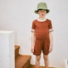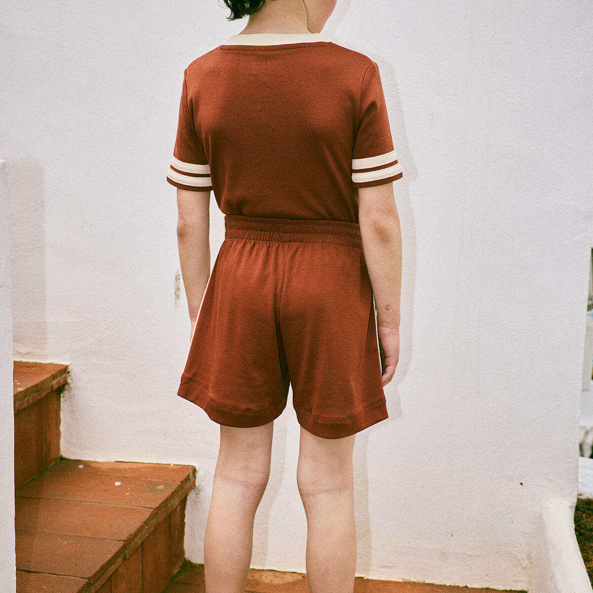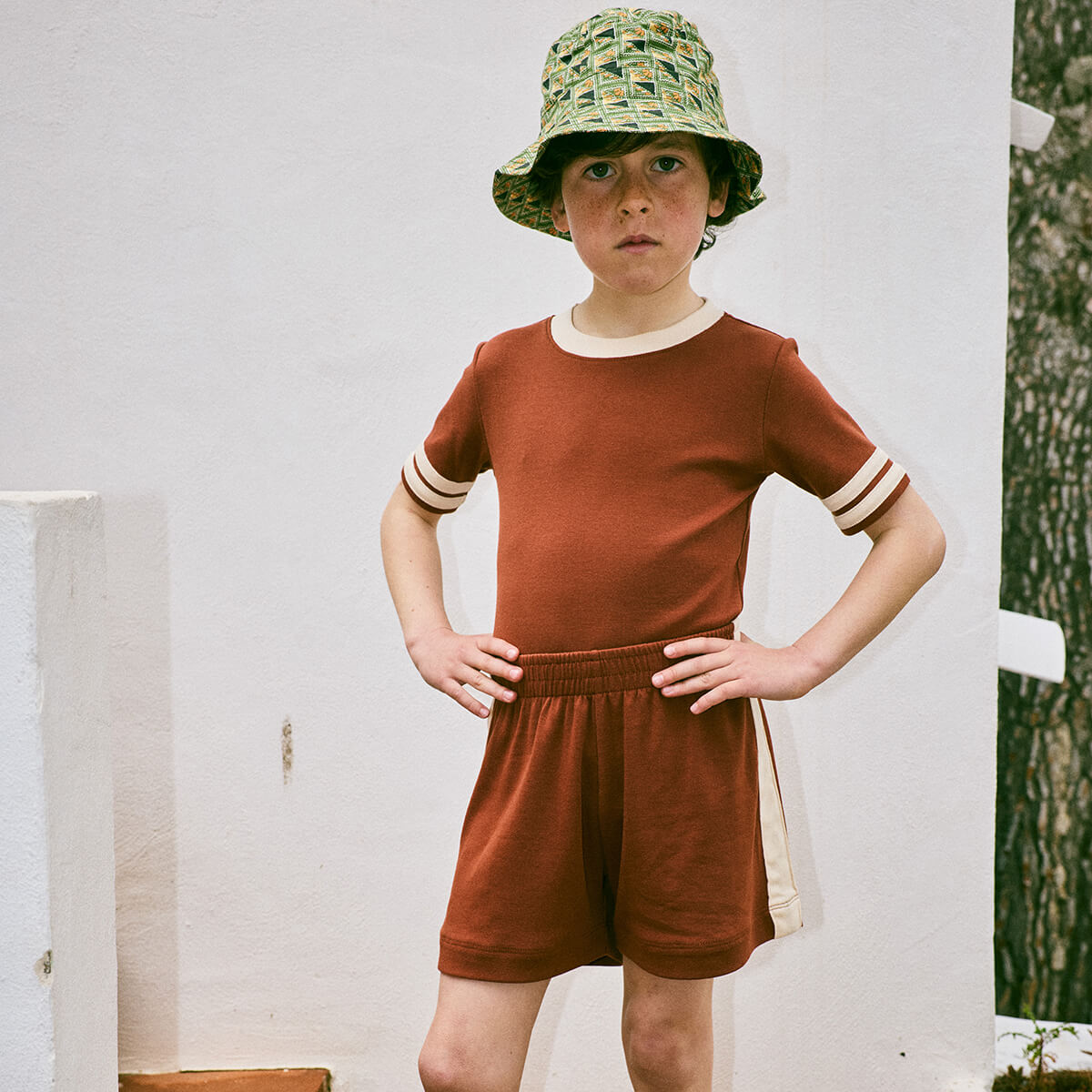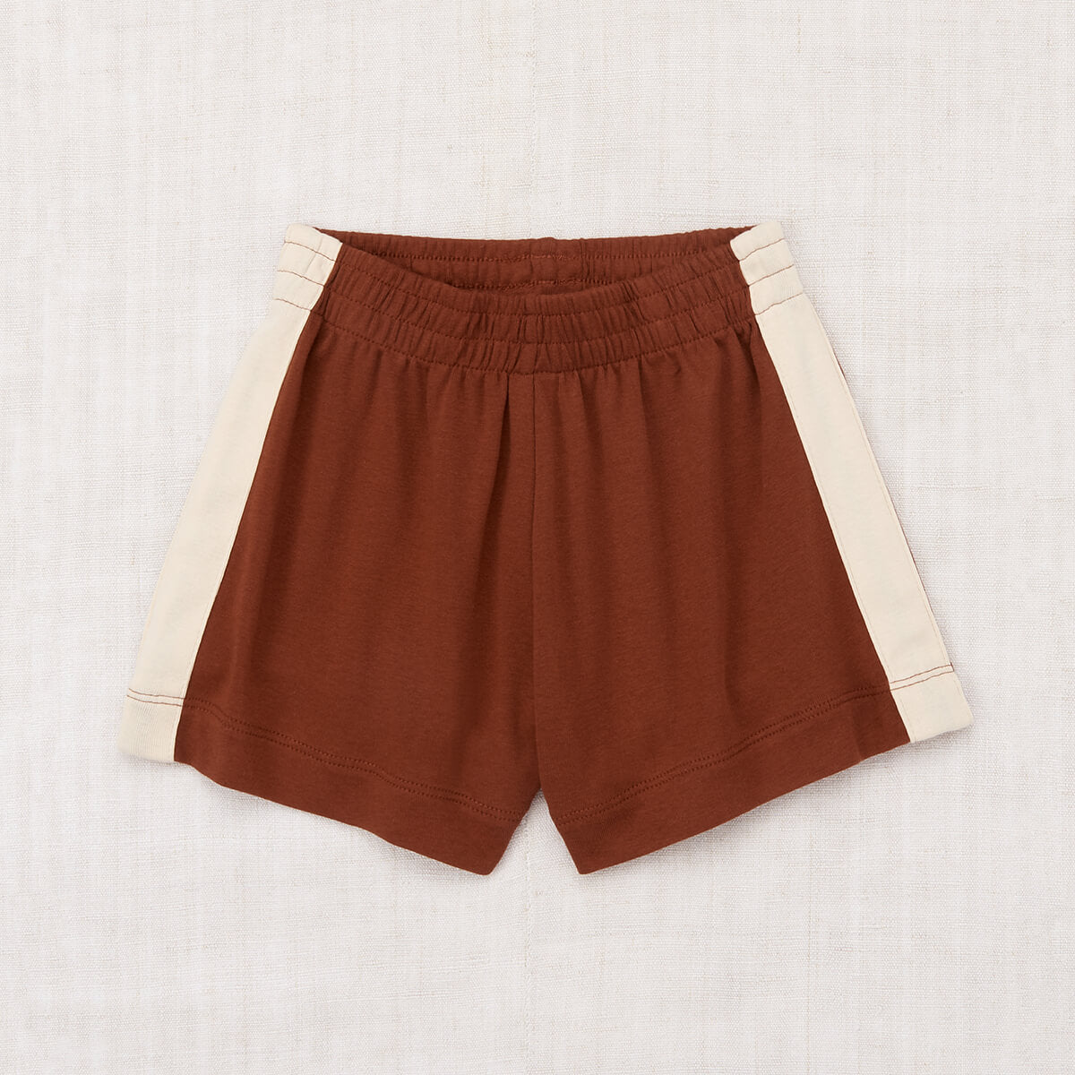 Resort Short by Misha & Puff. Vintage-style pull-on shorts in organic Pima cotton, with an elastic waistband and contrast appliqué striped sides.