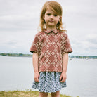Silvia Tee by Misha & Puff. A boxy short-sleeved tee in organic cotton, featuring a mod-inspired silhouette and collar, and snap closure at the back neck. This cotton is slightly thicker than Misha & Puff's Pima styles, with a touch of structure that holds shape.