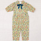 Zora Jumpsuit by Misha & Puff. A jumpsuit in cotton twill, featuring mid-length blouson sleeves, a rounded collar, a gathered waist, loose, tapered legs, a contrast-print bow at the center front, and front patch pockets. Finished with French seams.