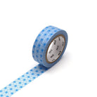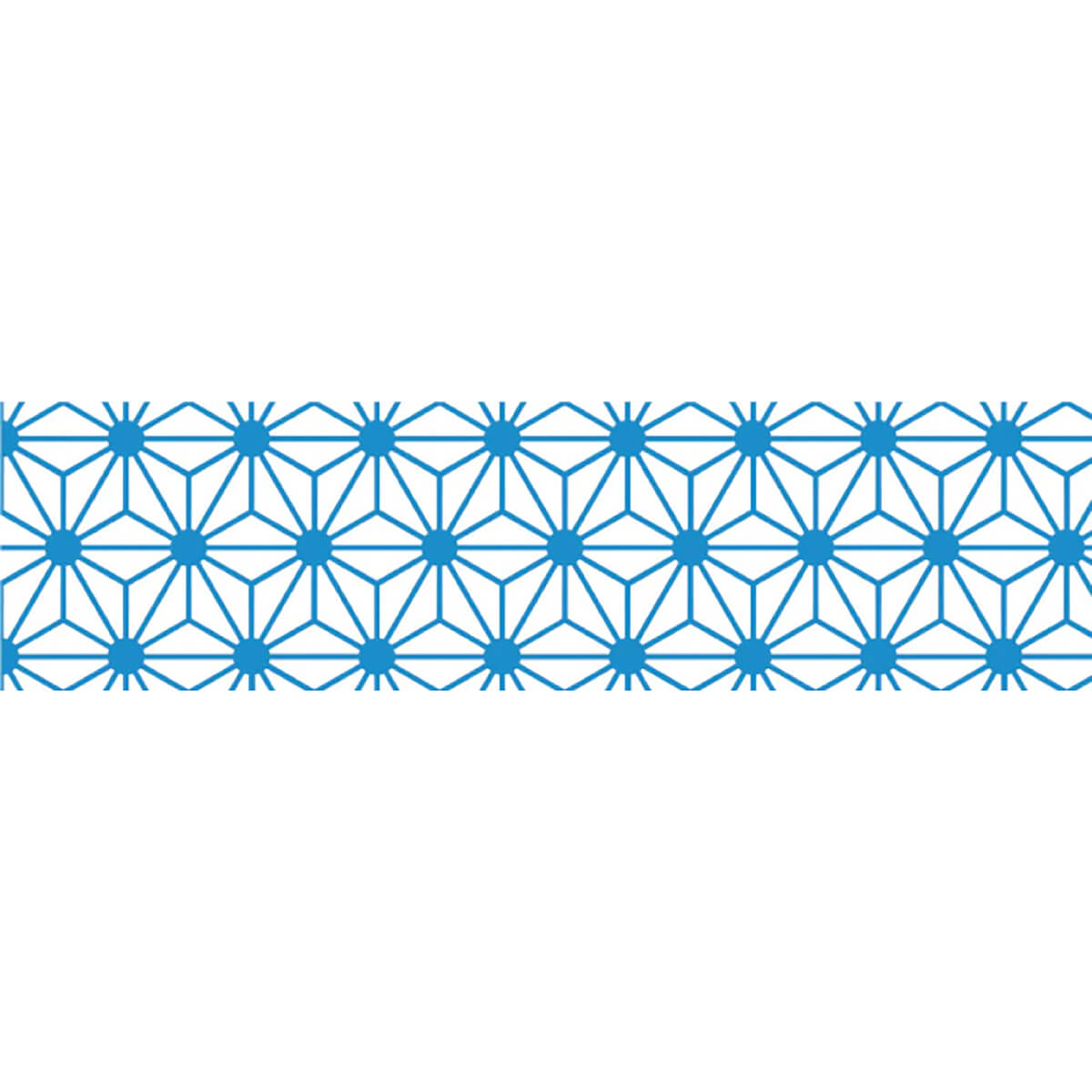 Asanoha Tsuyukusa 15mm Deco Series washi tape by MT Japan. This decorative roll from the MT Deco Series features a graphic Asanoha print in blue on a white background. Asanoha is a traditional Japanese pattern representing hemp leaves, and is believed to bestow health and long life. This pattern was often used on babies' and children's kimonos with the hope that they would grow up big and strong. From the mt DECO series, which showcases a variety of patterns including polka-dots, stripes, borders and grid paper.