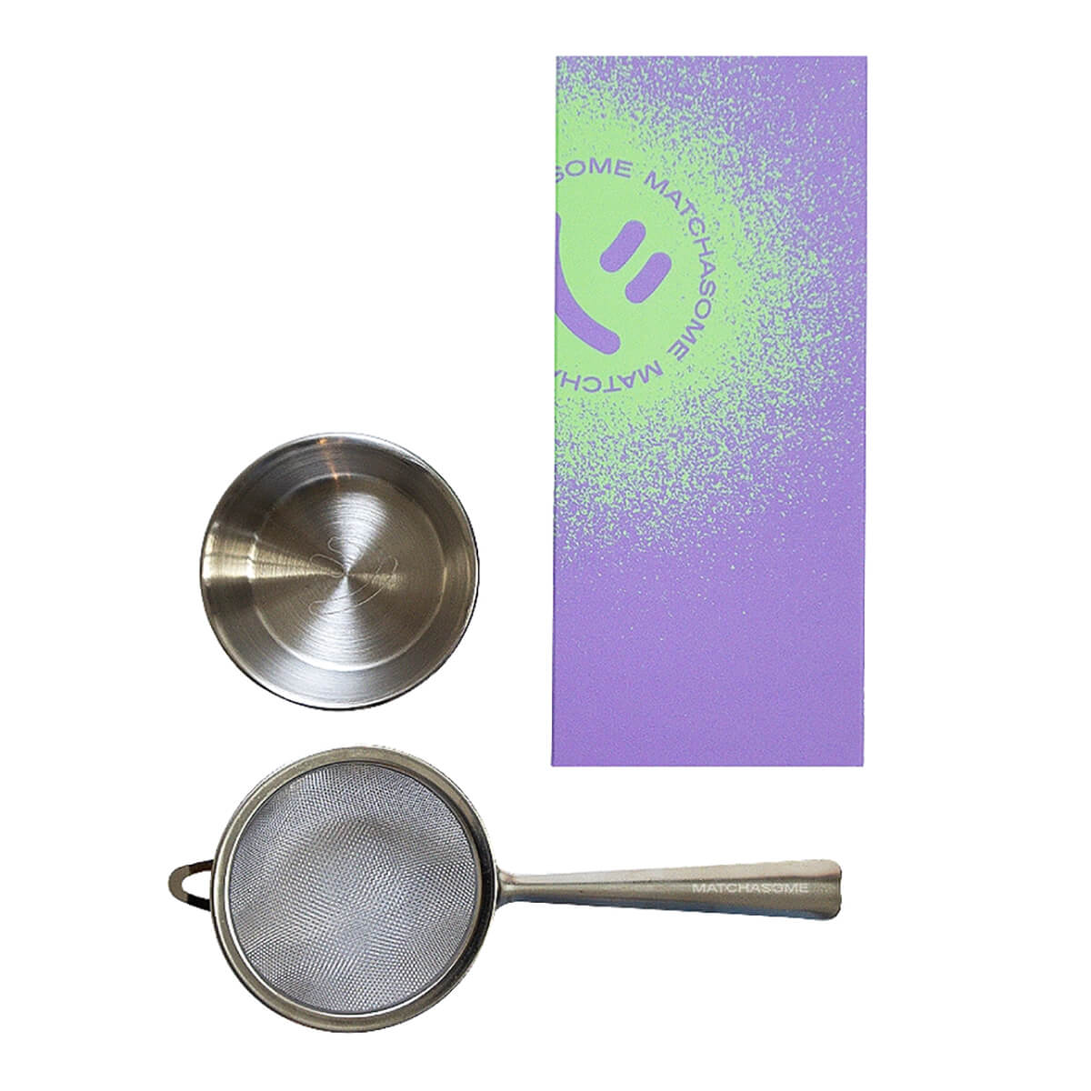 Matcha Sifter With Saucer by Matchasome. This fine-mesh stainless steel sifter (sieve) with saucer is a must-have tool for all matcha drinkers who love smooth and lump-free matcha. Thanks to the matching saucer for resting the sifter after use, you can kiss goodbye to cleaning matcha powder on your kitchen counter afterwards.