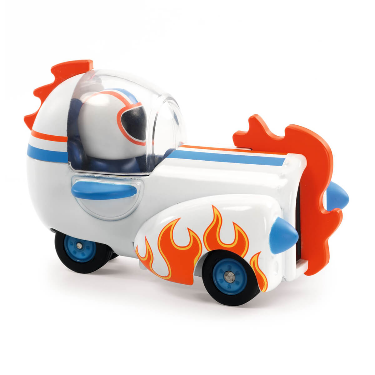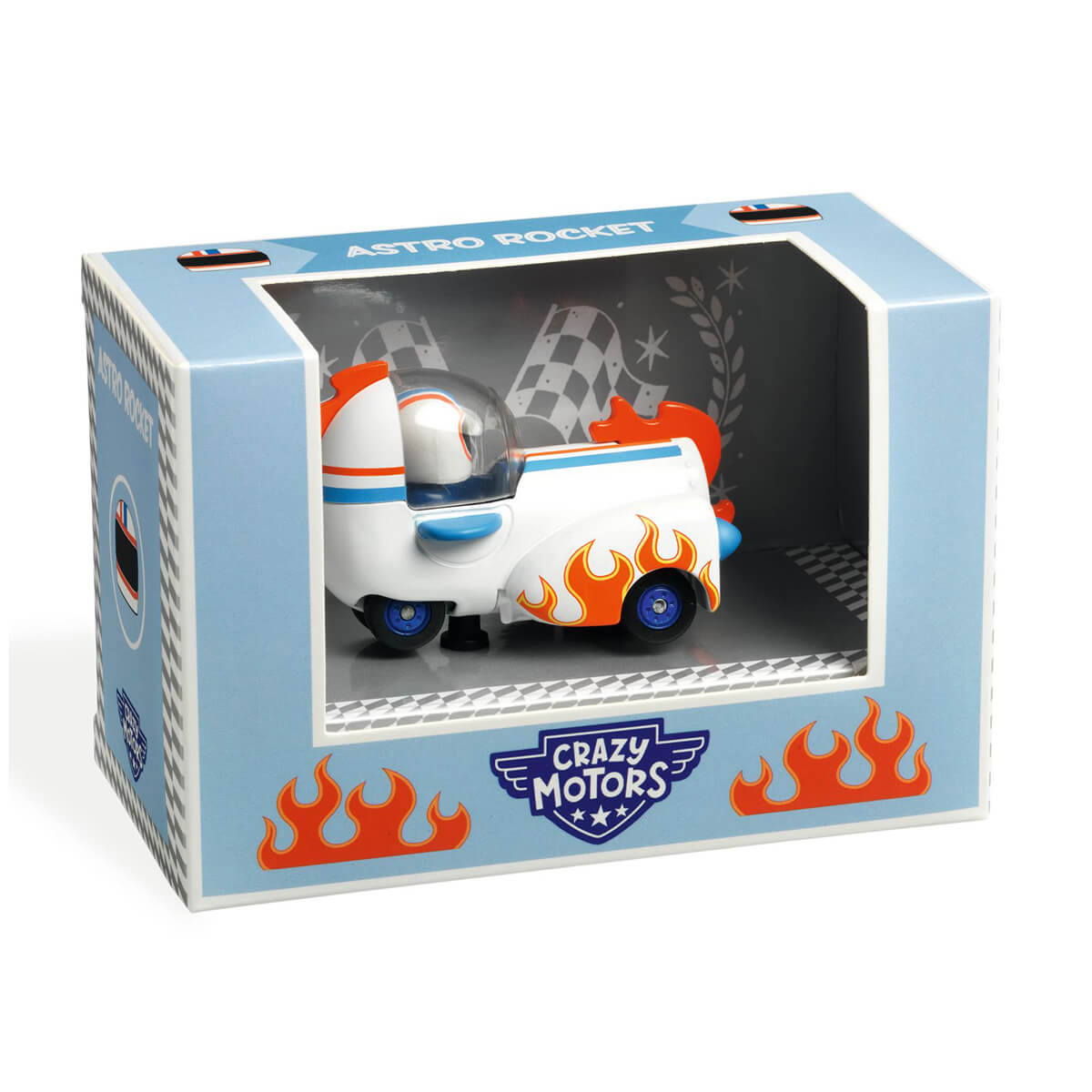 Crazy Motors Astro Rocket Toy Car by Djeco. 3, 2, 1... Blast off! With its flames and helmeted pilot on board, Astro Rocket is the space car that's always ready for astronomical races!