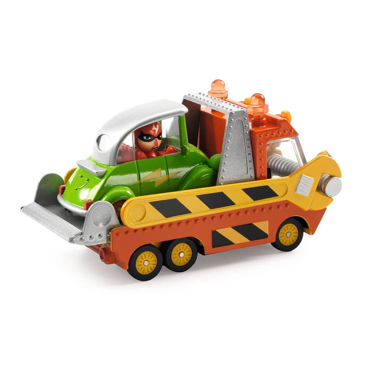Crazy Motors Crazy Truck by Djeco. Broken down vehicle? Quick, the Crazy Truck tow truck is on its way to help! Robust and imposing, it tows the broken-down vehicle onto its platform and transports it to the nearest garage for quick repairs. Simply essential!