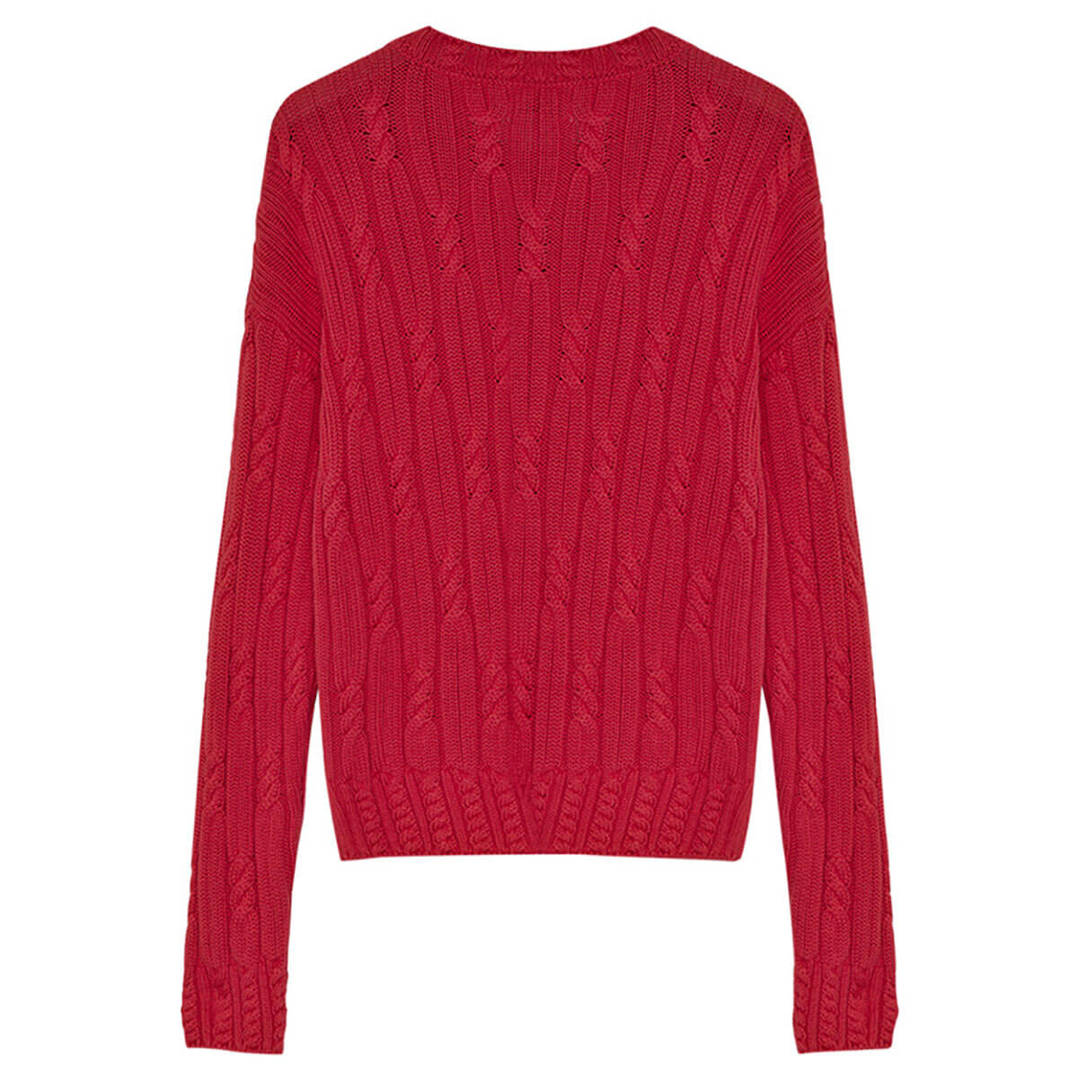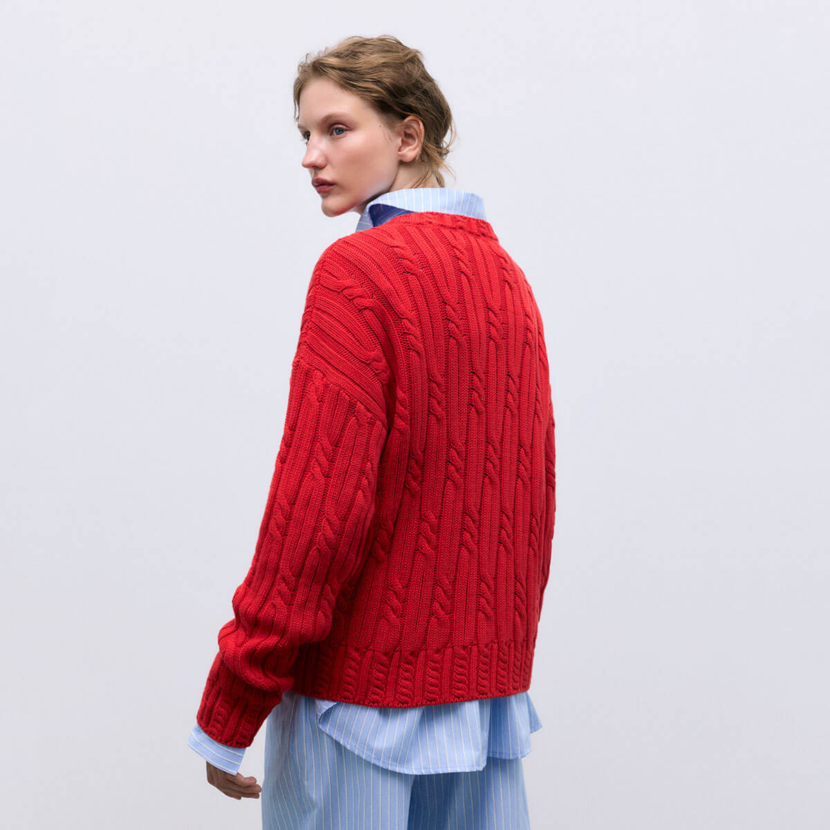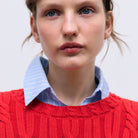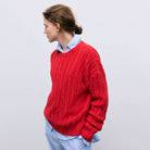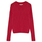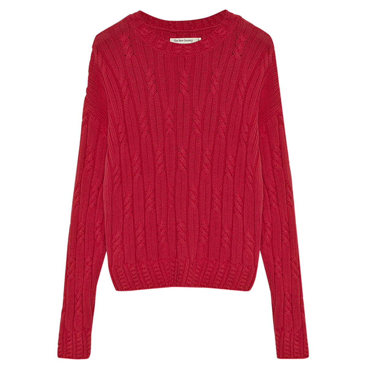Bluebell Jumper by The New Society Womenswear. Cable-knit sweater with small cable-knit details on the collar, cuffs, and hem, in a beautiful tulip red tone.
