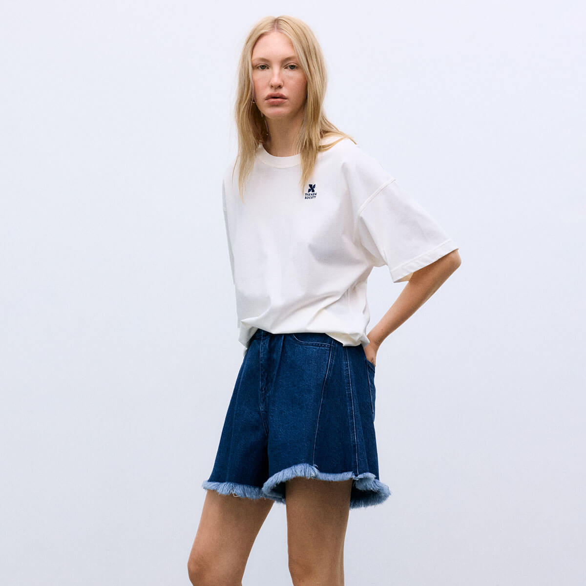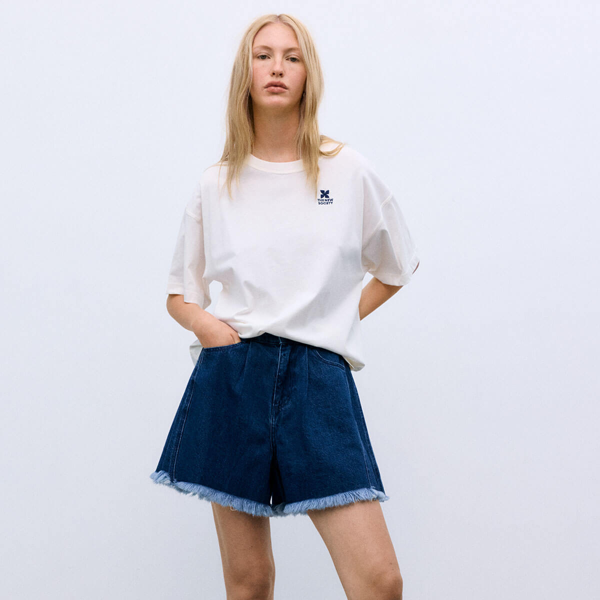 TNS Logo T-Shirt by The New Society Womenswear. Soft washed cotton tee with a ribbed crew neck and The New Society brand logo in contrasting print on the front.