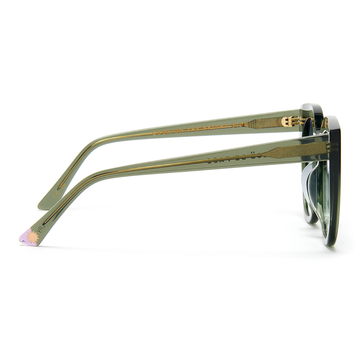Lily in Forest by Zoë De Pass Eyewear. Introducing Lily Forest sunglasses: a flattering soft cat-eye design that combines easy wearability, modern elegance, and versatility. Perfect for any occasion, Lily’s timeless shape suits most face shapes, adding a touch of sophistication to any outfit, from city chic to sunny day style. Effortlessly enhance your look with Lily Forest.
