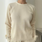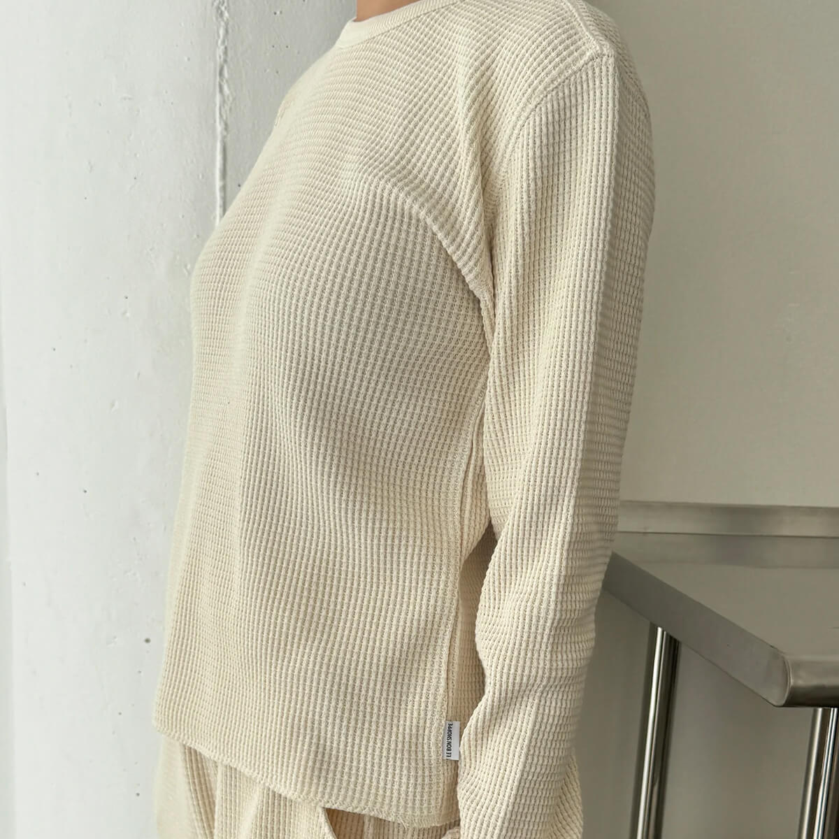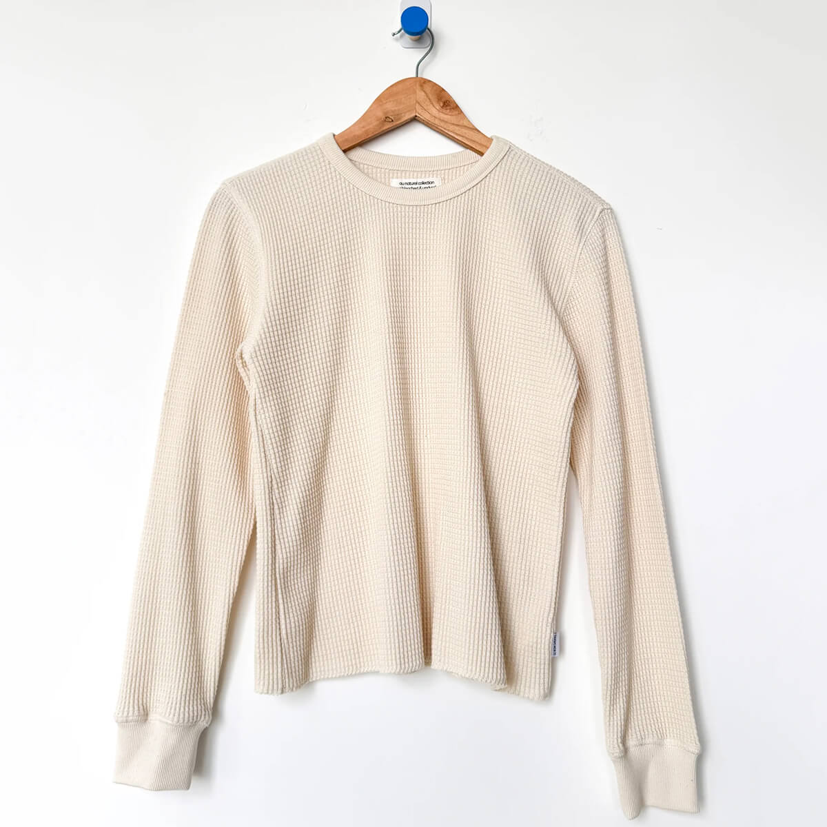Waffle Fundamental Tee by Le Bon Shoppe. The Waffle Fundamental Tee is crafted from a new heavyweight waffle cotton blend with beautiful structure and softness. A classic long-sleeve crew with baby ribbed cuffs and a close, easy fit designed for layering, lounging, and living in.