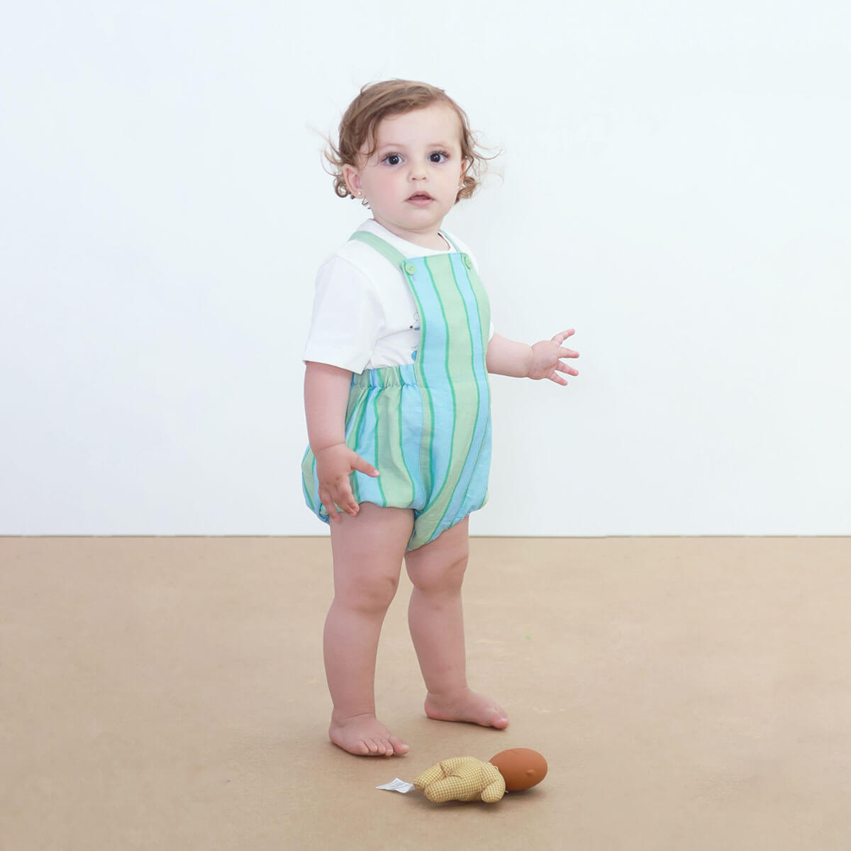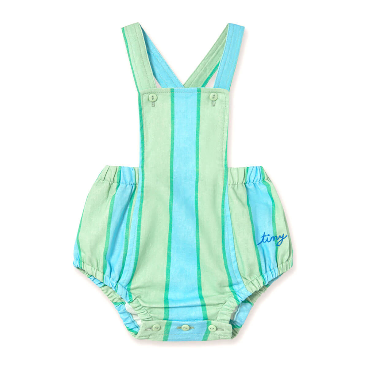 Retro Stripes Baby Body by Tinycottons. This romper is the perfect combination of comfort, style, and functionality for little ones. Made from a soft cotton blend with a breathable feel, it ensures freshness and comfort throughout the day. The body features adjustable straps with buttons for a customizable fit, while the bottom snap closure makes diaper changes quick and easy. Its relaxed and comfortable silhouette provides full freedom of movement, making this bodysuit an ideal choice for your baby’s everyday wear.