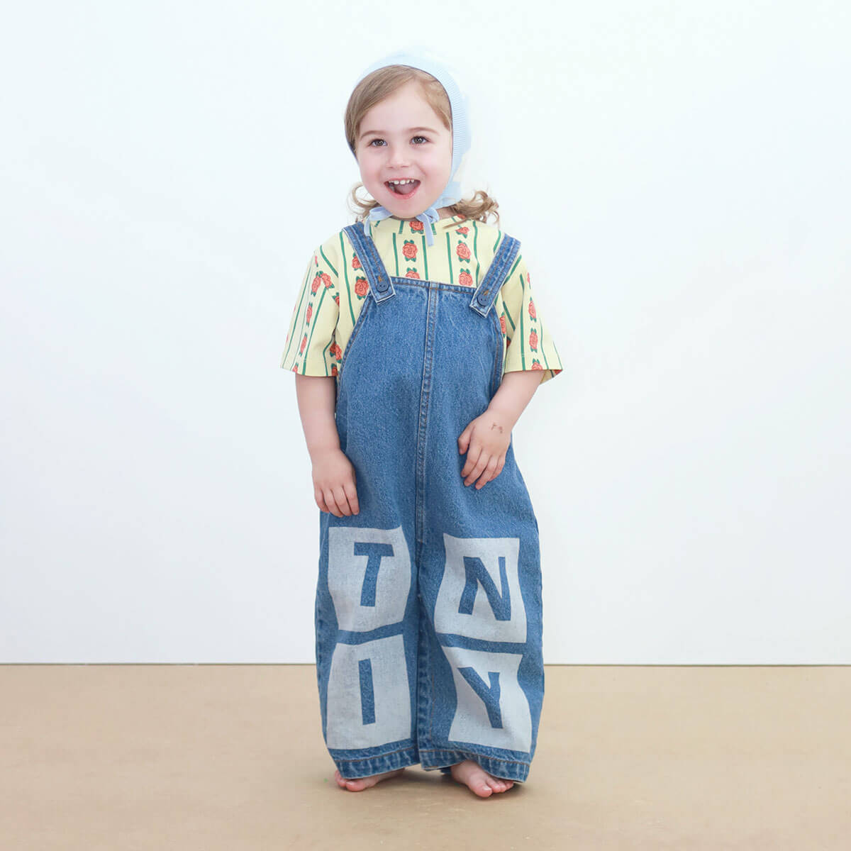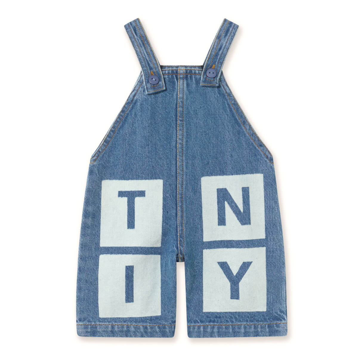 Tiny Denim Baby Dungaree by Tinycottons. This baby overall is made from durable 100% cotton denim, combining comfort and style in a practical piece. Featuring straps with buttons for easy opening and a TINY laser print on the lower part, it adds a modern and playful touch. Perfect to pair with a t-shirt or wear alone, it makes casual outfits effortlessly stylish.