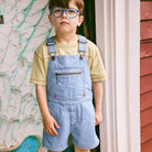 Zip Overall Shorts in Baby Blue Denim by Misha & Puff
