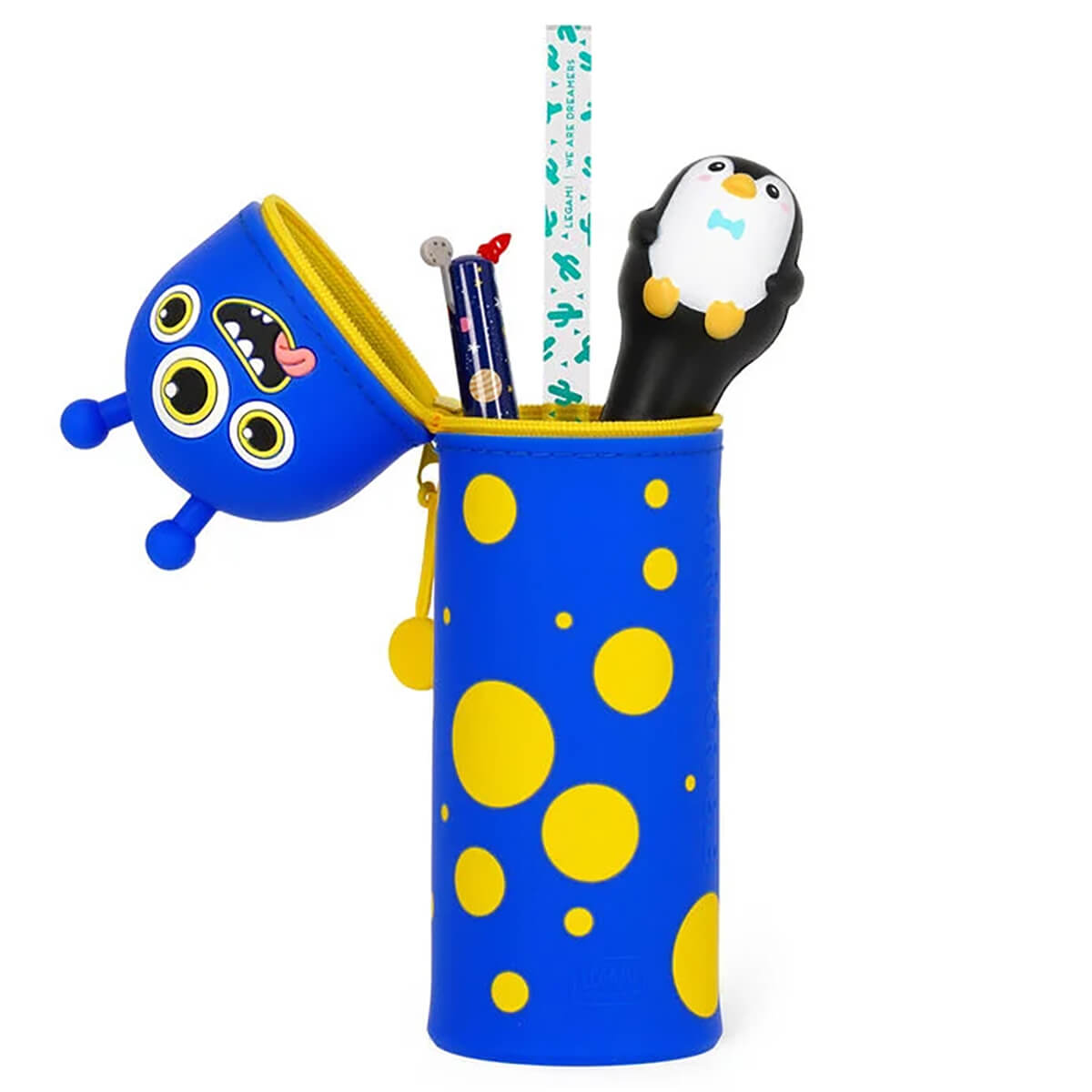 Monster Kawaii two-in-one soft silicone pencil case by Legami. Stay cute with the Legami 2 in 1 Soft Silicone Pencil Case - Kawaii - Monster. This school bag essential has a dual use as a pencil case and pen holder due to its clever design, retractable function and soft touch. So there’s no excuse for not doing your homework.