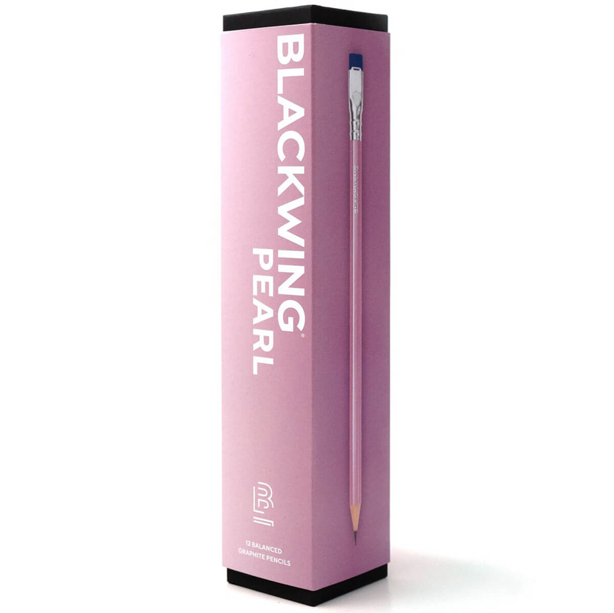 Box of 12 Blackwing Pearl Pink pencils by Blackwing. The legendary Blackwing pencil in pearly pink. The new pink Pearl colourway is a new addition to the core Blackwing pencil line-up. Each pencil contains the same balanced and smooth graphite core found in the other Pearl pencils. It is softer than the graphite found in the Blackwing 602, but firmer than the graphite found in the Blackwing Matte, a favourite among calligraphers and illustrators. Each pencil features a pearlescent finish, iconic square Blackwing ferrule, silver imprint, and bright blue eraser. With a balanced lead, these pencils are great for any creative young person, and are perfect as a first writing pencil.