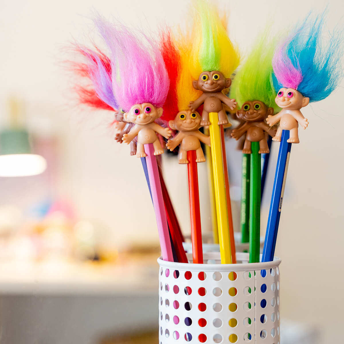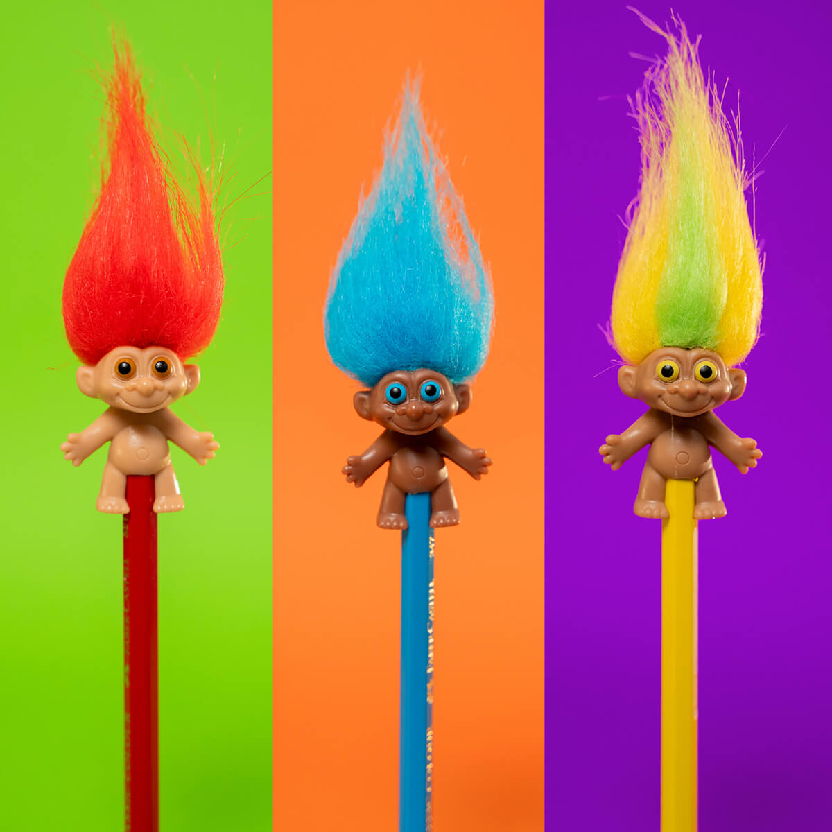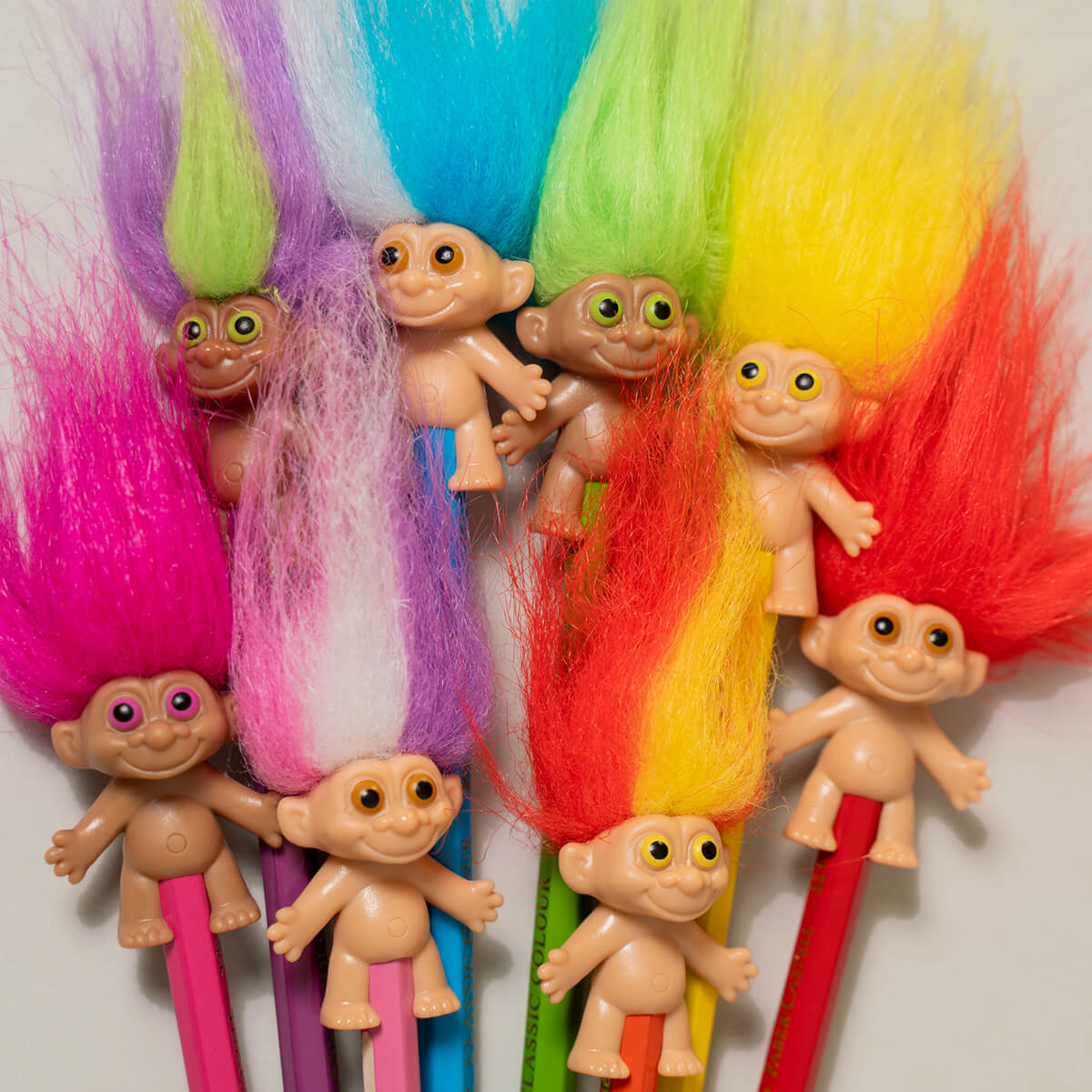 Troll Pencil Toppers by Bandai. The classic Troll to celebrate its 65th anniversary! Pencil topper with fluffy hair, just like the originals.