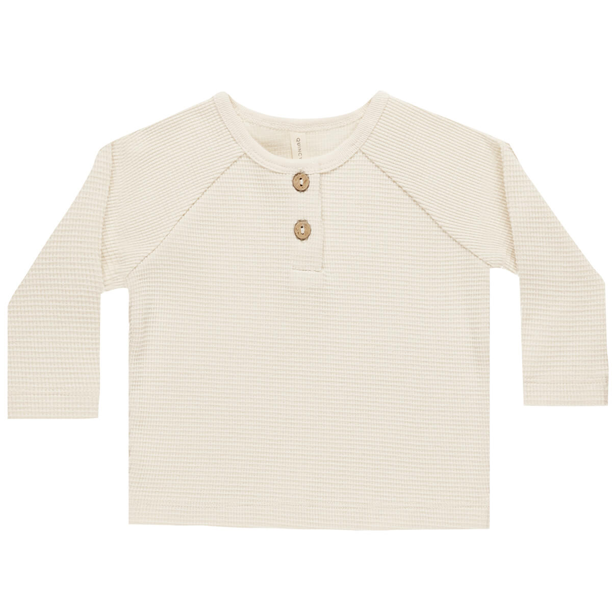 Henley Knit Top by Quincy Mae. Long sleeve boxy fit shirt with buttons along the center front.