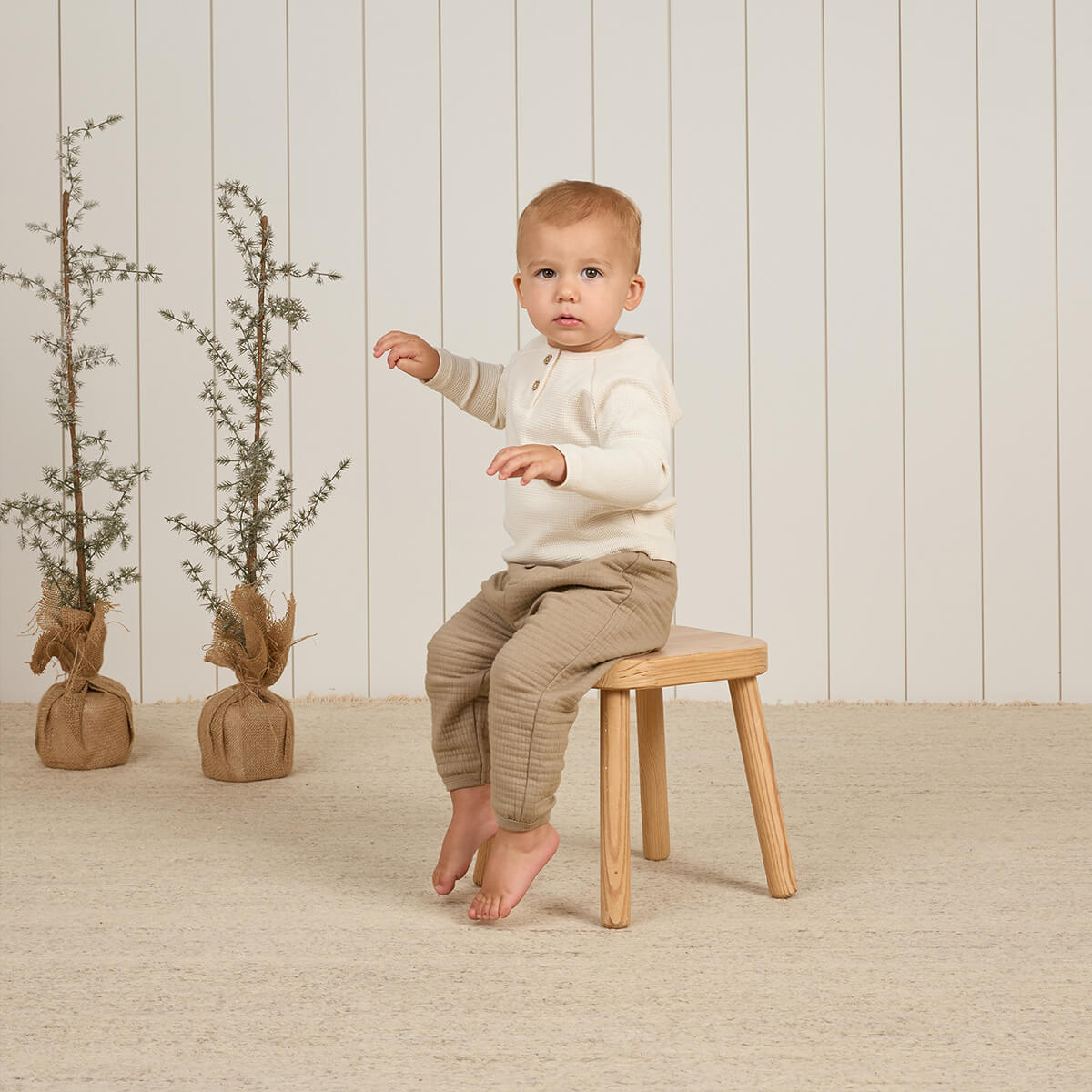 Henley Knit Top in Natural by Quincy Mae