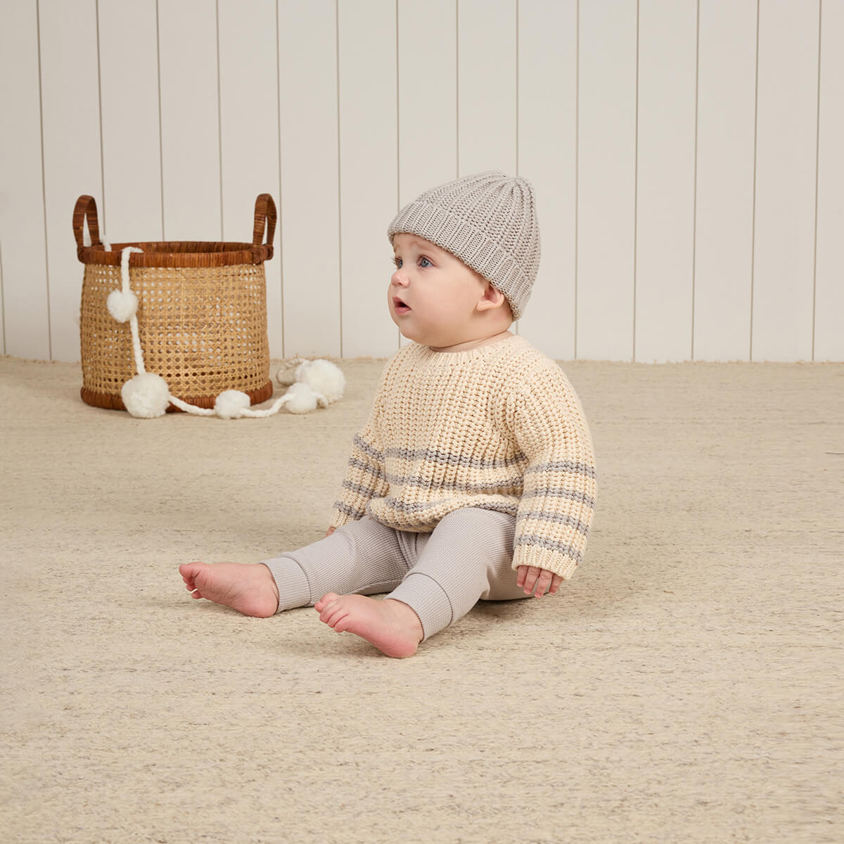 Legging by Quincy Mae. Organic cotton legging with elastic waistband and coconut button detailing at front.