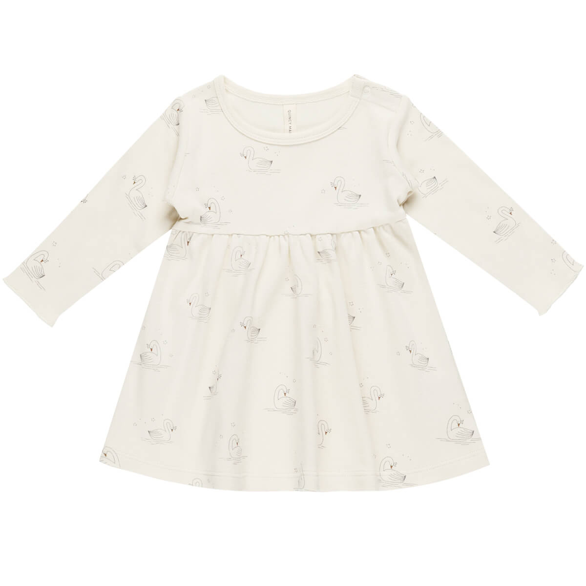 Long Sleeve Dress by Quincy Mae. Velvety soft long sleeve baby dress paired with gathered bloomers. All baby sizes have snaps at the shoulder for easy changing.