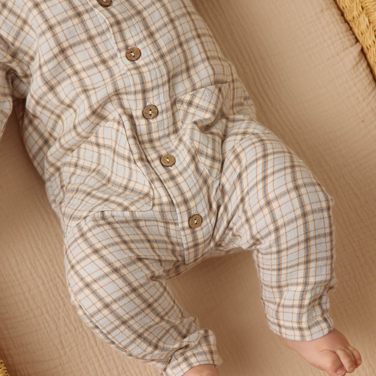 Pocketed Woven Jumpsuit by Quincy Mae. Made from soft organic cotton gauze, this darling jumpsuit features square patch pockets on the front and buttons down the center for easy changing, an everyday staple with timeless charm.