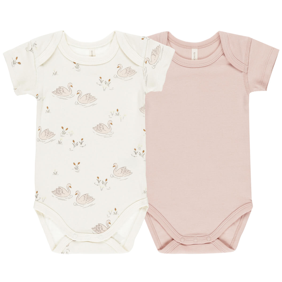Short Sleeve Bodysuit (2 Pack) in Swans / Bubblegum by Quincy Mae