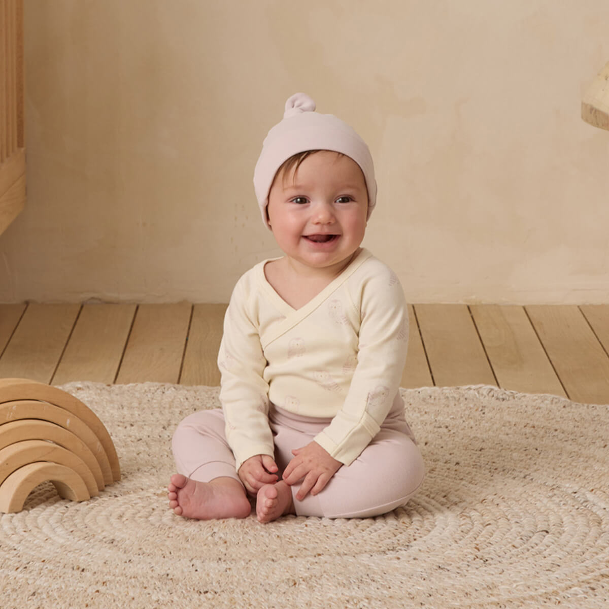 Side Snap Bodysuit and Pant Set by Quincy Mae. Made from soft, brushed jersey, this set pairs a side-snap bodysuit with matching pants featuring a roll-over ribbed waistband and ribbed cuffs. Cosy and comfortable, it’s perfect for keeping your little one snug all day.