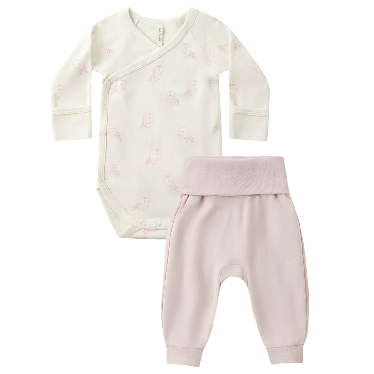 Side Snap Bodysuit and Pant Set in Snow Owls by Quincy Mae