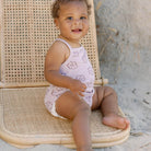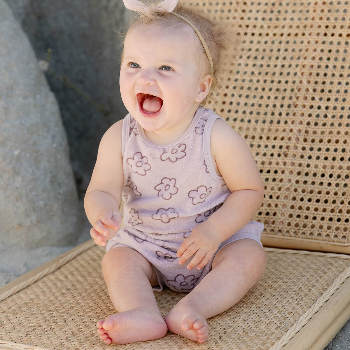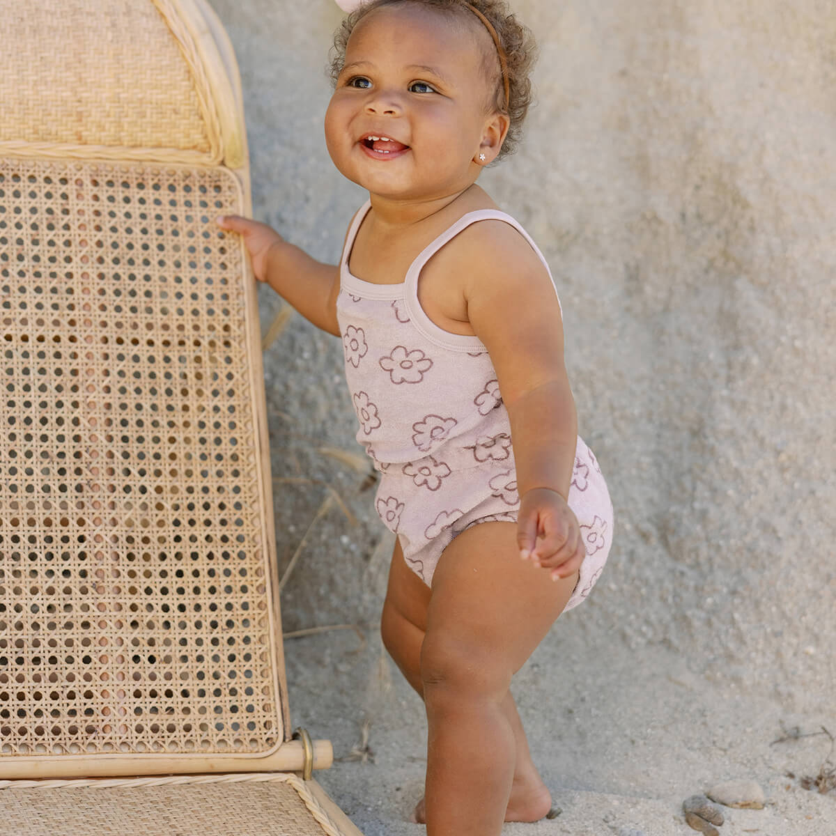 Terry Cinch Romper by Quincy Mae. This terry towelling romper is a sure summer go-to! Featuring spaghetti straps, a cinched waist, and bottom snaps for easy changes.