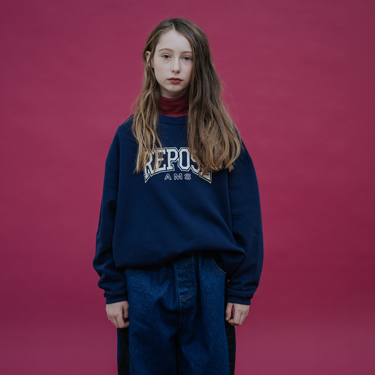 Cozydrop Sweater by Repose AMS. A boxy fit sweatshirt with drop shoulder, crew neck and Repose graphic text print.