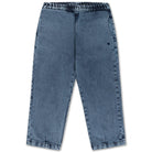 No Sweat Pant by Repose AMS. Cut from soft organic cotton denim, the no sweat pants feature an elastic waistband for easy movement, side pockets, two back patch pockets, and an embroidered logo on the hip. Designed for a relaxed and comfortable fit, these pull-on-and-go jeans are perfect for everyday wear.