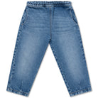 No Sweat Pants by Repose AMS. Cut from soft organic cotton denim, the no sweat pants feature an elastic waistband for easy movement, side pockets, two back patch pockets, and an embroidered logo on the hip. Designed for a relaxed and comfortable fit, these pull-on-and-go jeans are perfect for everyday wear.