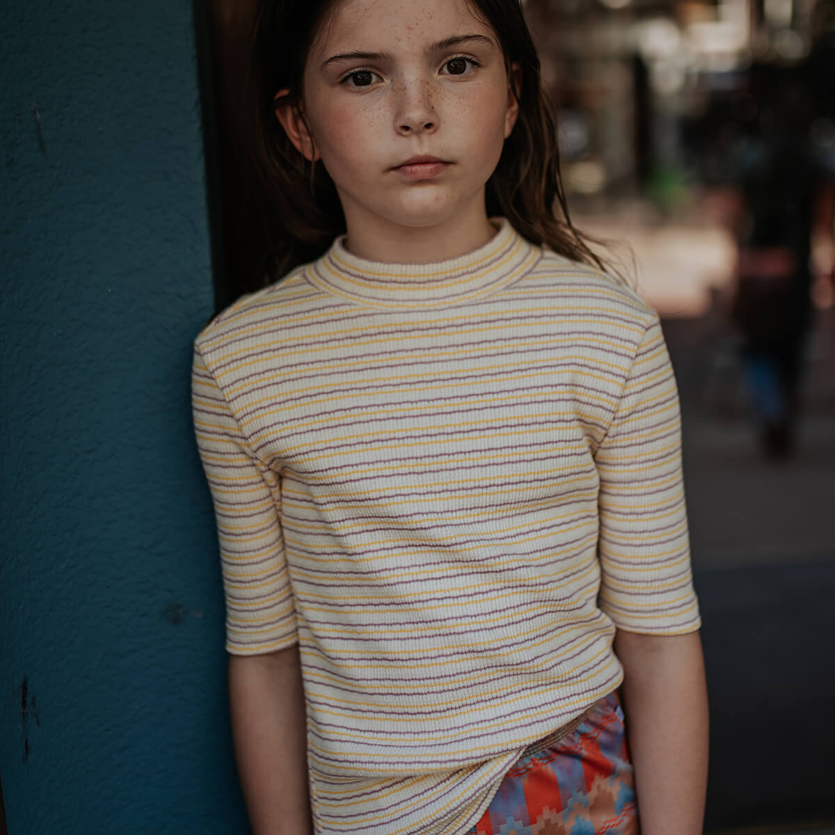 Slim Tee in Fine Buff Orchid Stripe by Repose AMS