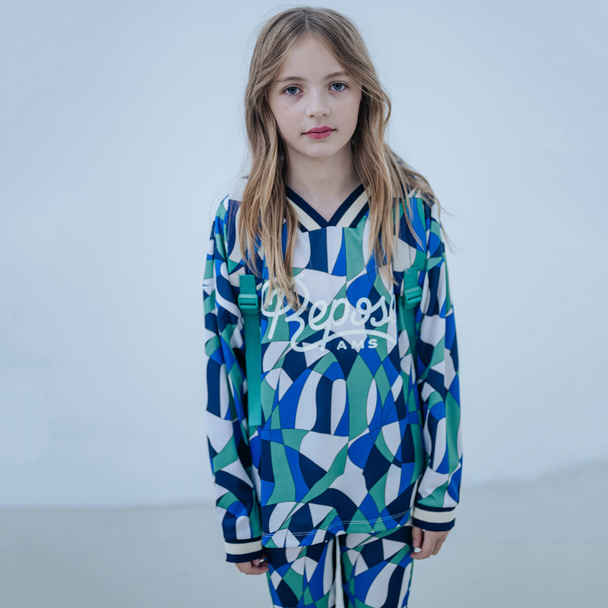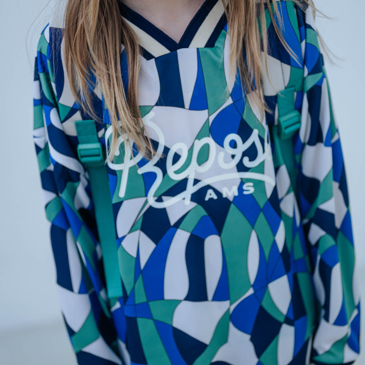 Socker Tee by Repose AMS. A t shirt with a v-neck, long sleeves and Repose text print.
