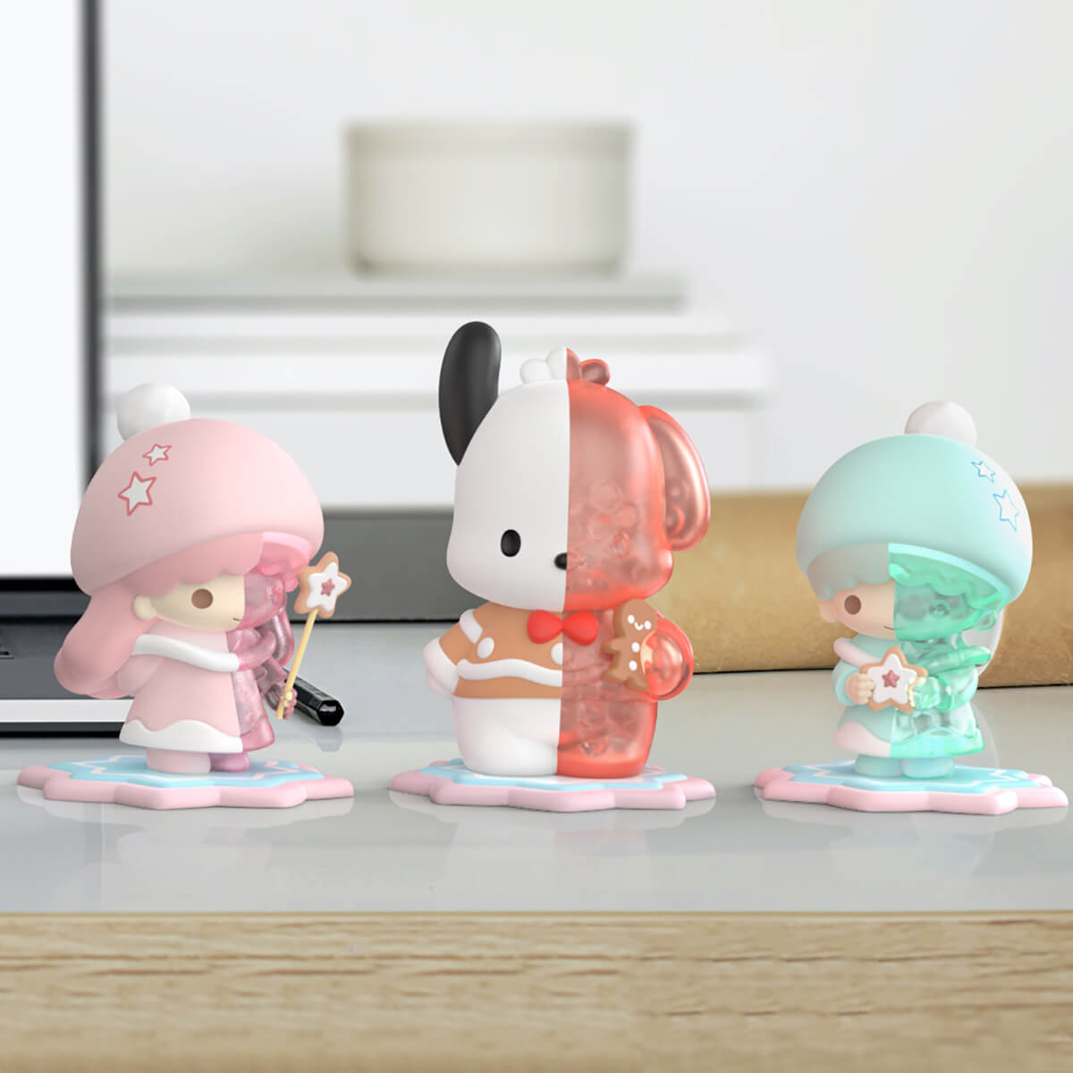 Kandy X Sanrio Ft. Jason Freeny Characters Series 3 Snowy Dreams Edition by Mighty Jaxx. Open up a surprise blind box of Kandy surprises! All your favourite Sanrio characters are here in this blind box collection from Mighty Jaxx. Hello Kitty and her friends take on winter with this adorable opening edition. Each character is half transparent, revealing their unique personality and a different type of sweetness inside. From the classic taste of candy canes to the comforting flavor of eggnog, this collection captures the essence of the season and character identity! Don't miss out on this chance to experience the sweetness of winter with Hello Kitty and her friends! . Admire the detailing of their full coloured halves or peep into each clear Kandied half and spot their unique half dissections, sculpted beautifully by Jason Freeny. Blind box surprise featuring six regular Sanrio characters, including Hello Kitty Candy Cane, Hello Kitty White Chocolate Truffle, Twin Cookies Lala and Kiki, Cinnamoroll, Pochacco Cookie and one rare surprise Eggnog Gudetama, will you unbox every sweet Kandy flavour and collect them all?