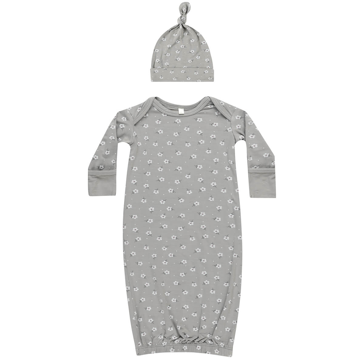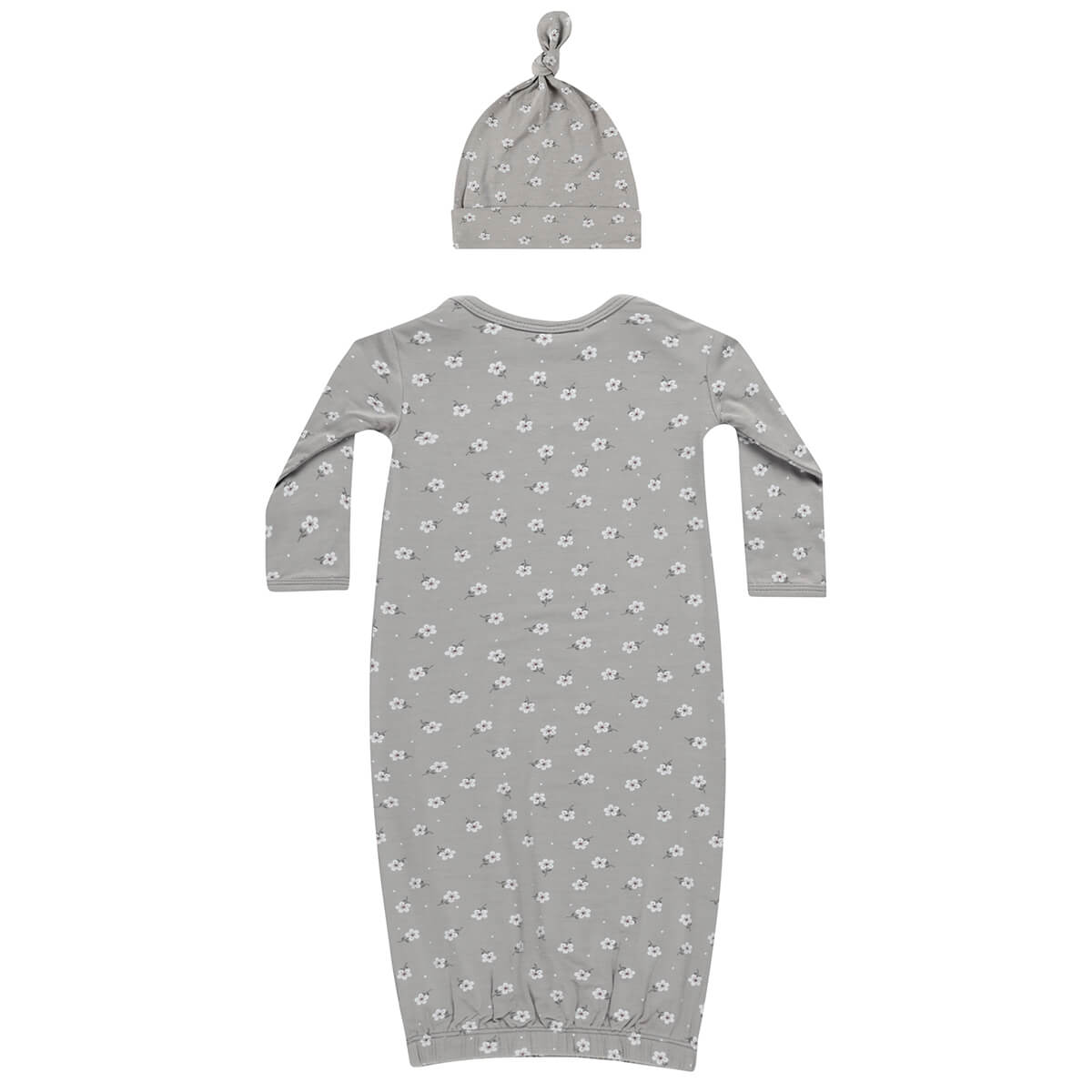 Bamboo Baby Gown and Hat Set in Blue Ditsy by Quincy Mae - Last One In Stock - One Size