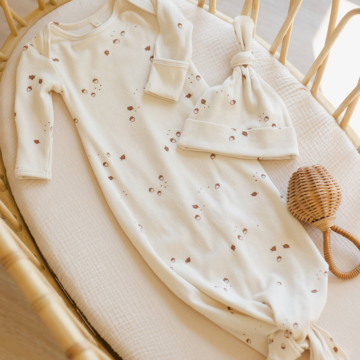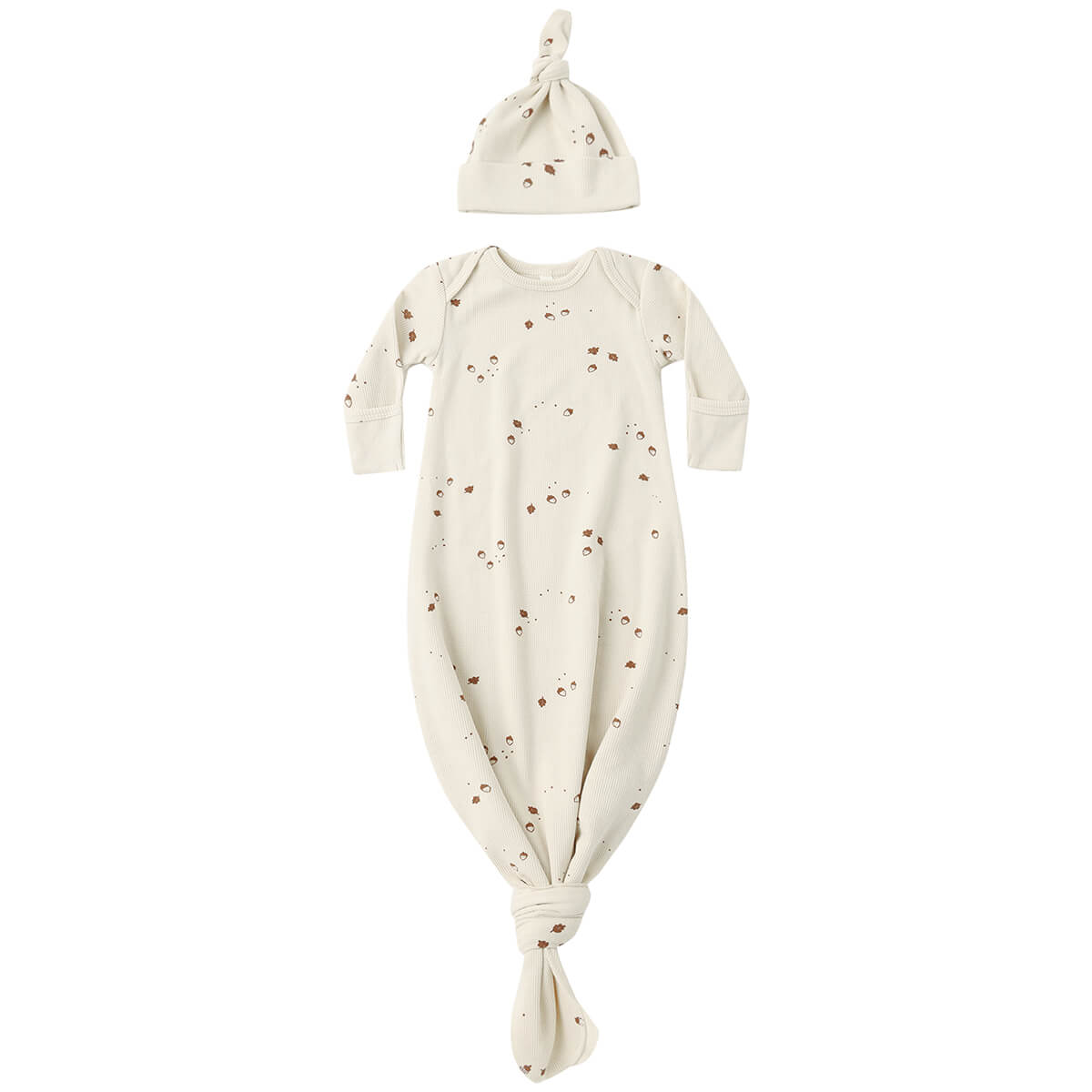 Knotted Baby Gown and Hat Set in Acorns by Quincy Mae