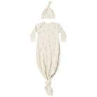 Knotted Baby Gown and Hat Set by Quincy Mae. Knotted baby gown designed with lap sleeves and fold-over hand mitts to keep baby snug, paired with a matching knotted hat. The set is crafted from soft and stretchy rib knit.