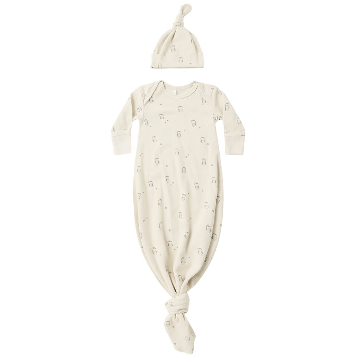 Knotted Baby Gown and Hat Set in Owls by Quincy Mae