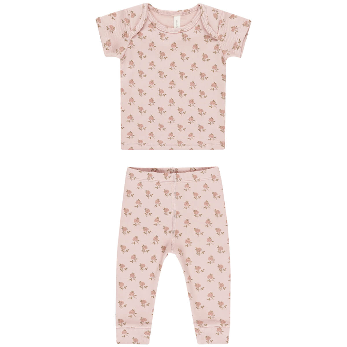 Ribbed Tee and Legging Set in Rose by Quincy Mae