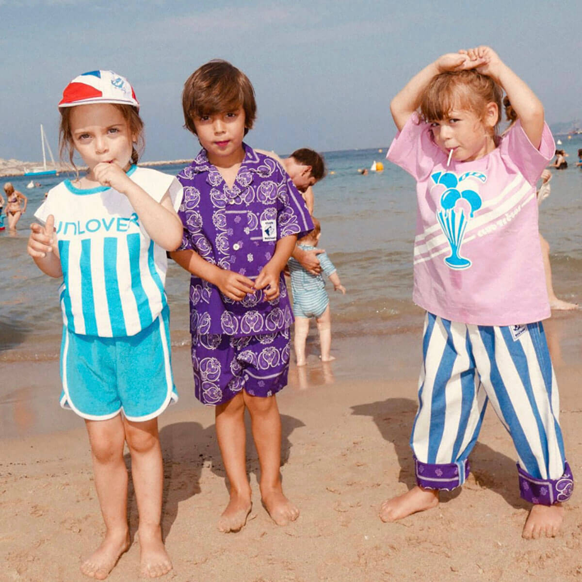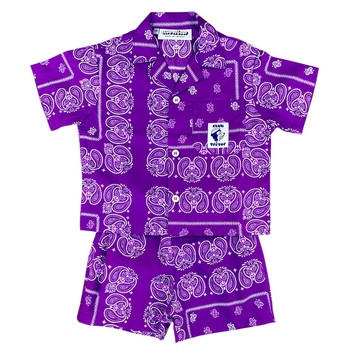 Summer Shirt and Shorts Set by Club Trésor. The Summer sets are designed to last two summers. The shirt is worn oversized the first year, then more fitted the next. The elastic waistband of the shorts is stretchable and suitable for different body shapes and ages. Worn high-waisted for the youngest, they will be worn lower on the waist as your child grows. Made in France, in a Marseille-based workshop, from deadstock fabrics dating from the 2000s to today, they both combine comfort, style, and durability.