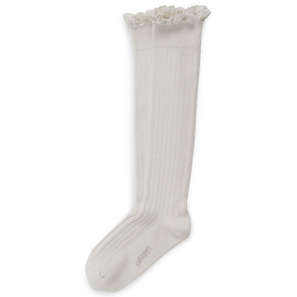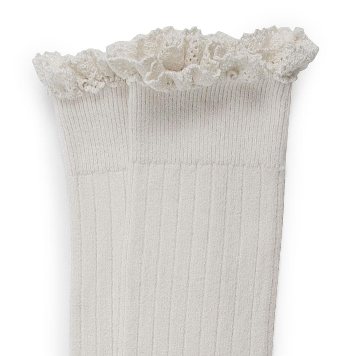 Josephine Lace Trim Ribbed Knee High Socks in Blanc Neige by Collegien - Last One In Stock - 1-2 Years
