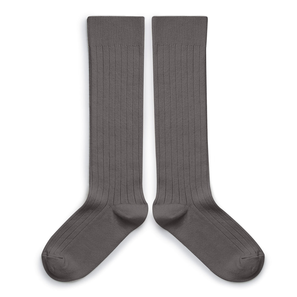 La Haute Ribbed Knee High Socks in Gris Galet by Collegien