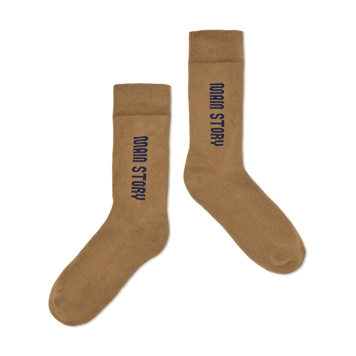 Socks by Main Story. Mid-calf socks for comfortable toes with a Main Story jacquard motif.