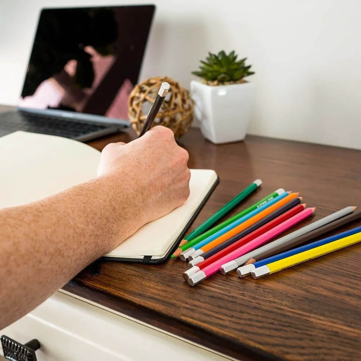 Box of 12 Blackwing Colours colouring pencils by Blackwing. Made in Japan from renewable Californian incense-cedar, Blackwing Colors are the perfect colouring tools, featuring Japanese wax core leads and silver hex caps.